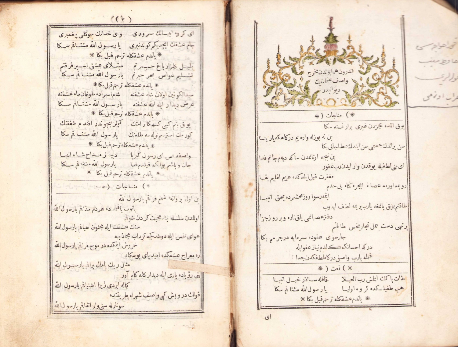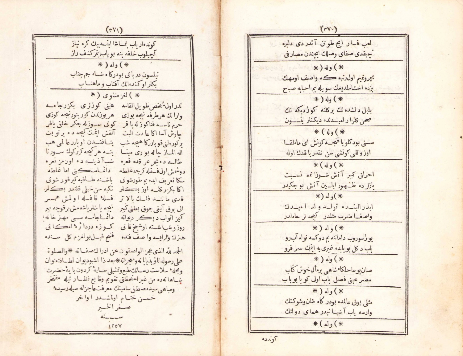Taş Baskı Endurunlu Vasıf Osman Divanı, 371 sayfa, 1257 tarihli İstanbul ilk baskısı, cildin ön kapağı haliyledir, Osmanlıca, 15x22,5 cm.