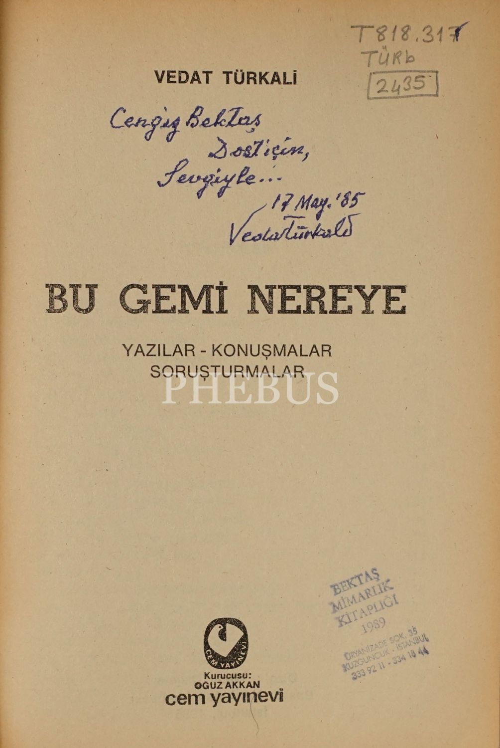 BU GEMİ NEREYE, Vedat Türkali, 1985, Cem Yayınevi, 222 sayfa, 14x20 cm...
