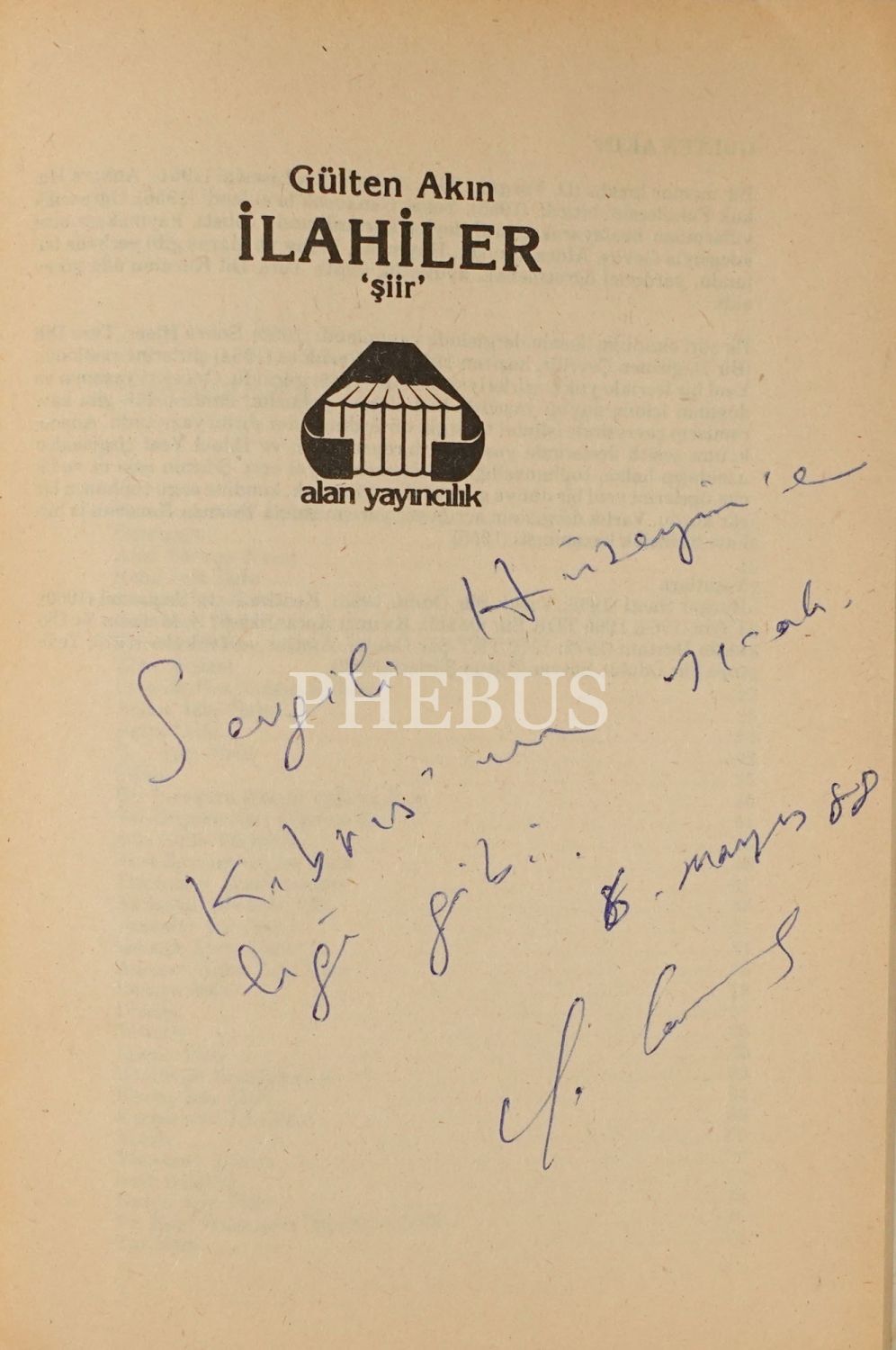 "Sevgili Hüseyin´e Kıbrıs´ın sıcaklığı gibi" ithafıyla 8 Mayıs 1988 tarihinde imzalanmıştır.