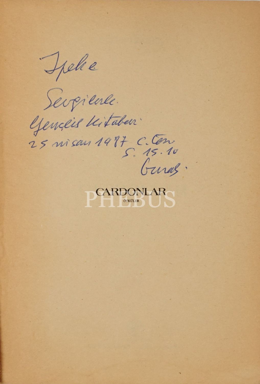 "İpek´e sevgilerle" ithafıyla 25 Nisan 1987 tarihinde imzalanmıştır.