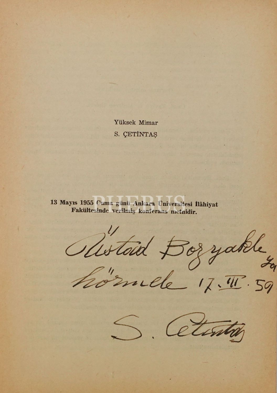"Üstad Bozyaklı´ya hörmetle" ithafıyla 17 Mart 1959 tarihinde imzalanmıştır.