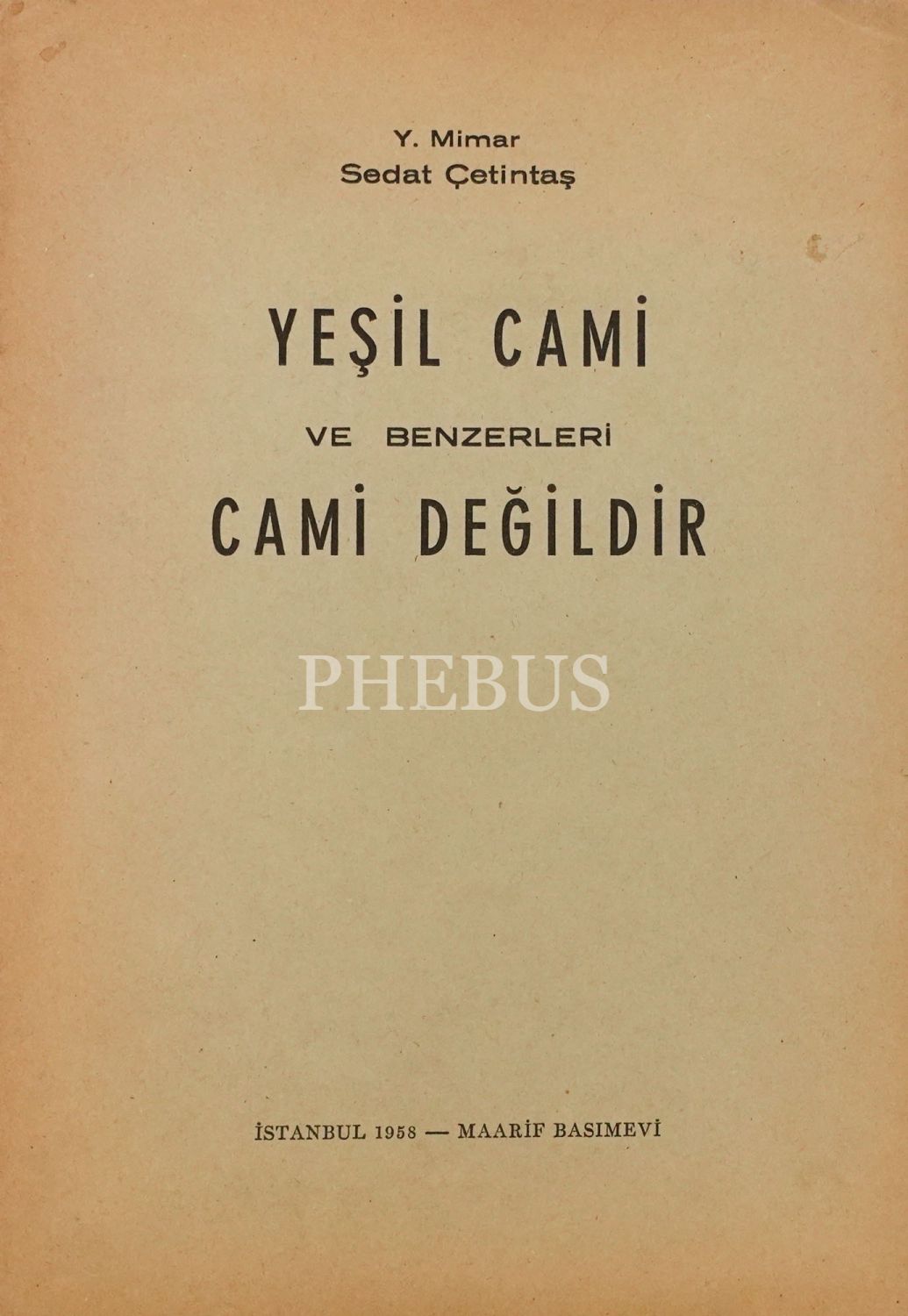 YEŞİL CAMİ VE BENZERLERİ CAMİ DEĞİLDİR, Sedat Çetintaş, 1958, Maarif Basımevi, 26 sayfa, 17x24 cm...