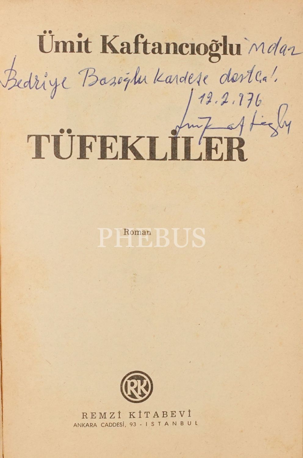"Ümit Kaftancıoğlu´ndan Bedriye Başoğlu kardeşe dostça" ithafıyla 12 Şubat 1976 tarihinde imzalanmıştır.