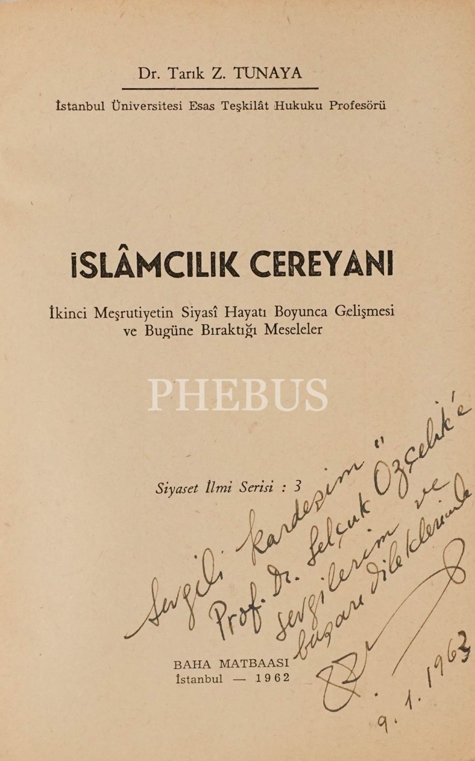 İSLAMCILIK CEREYANI, Tarık Z. Tunaya, 1962, Baha Matbaası, 330 sayfa, 14x20 cm...