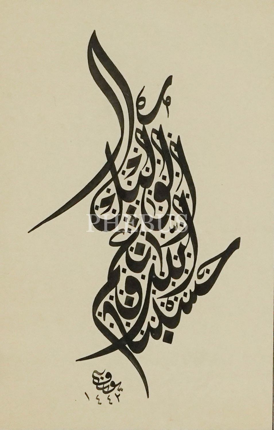 Yazı: "Hasbünallahu ve nime´l-vekil" Manası: Allah bize yeter, o ne güzel vekildir.