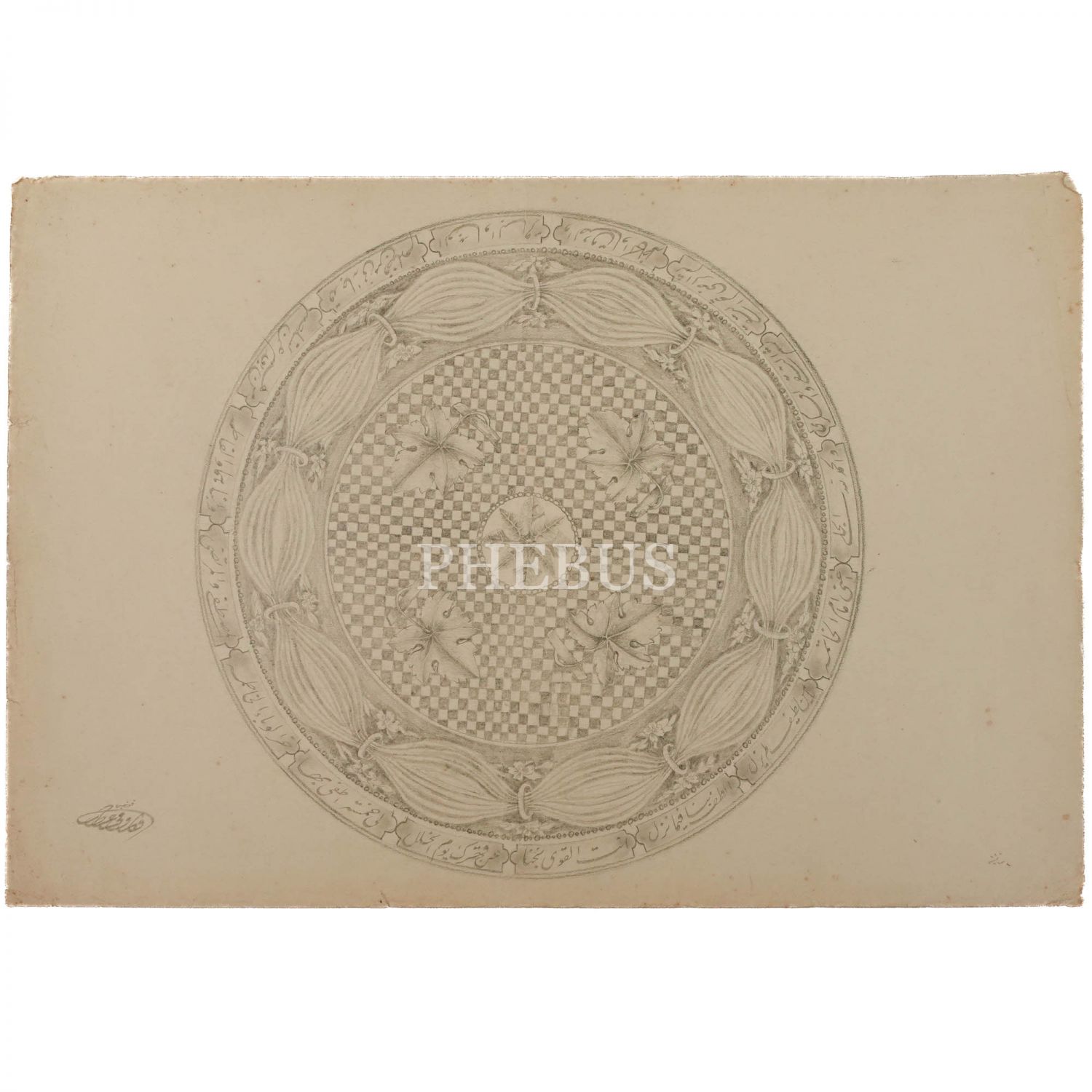 Fârûkî Attar ketebeli, tamamı kurşun kalemle yapılmış şahane tasarımlı yazı ve süslemeler, süslemelerin etrafında talik yazı ile Arapça dini şiirler yazılıdır, 39x27 cm...