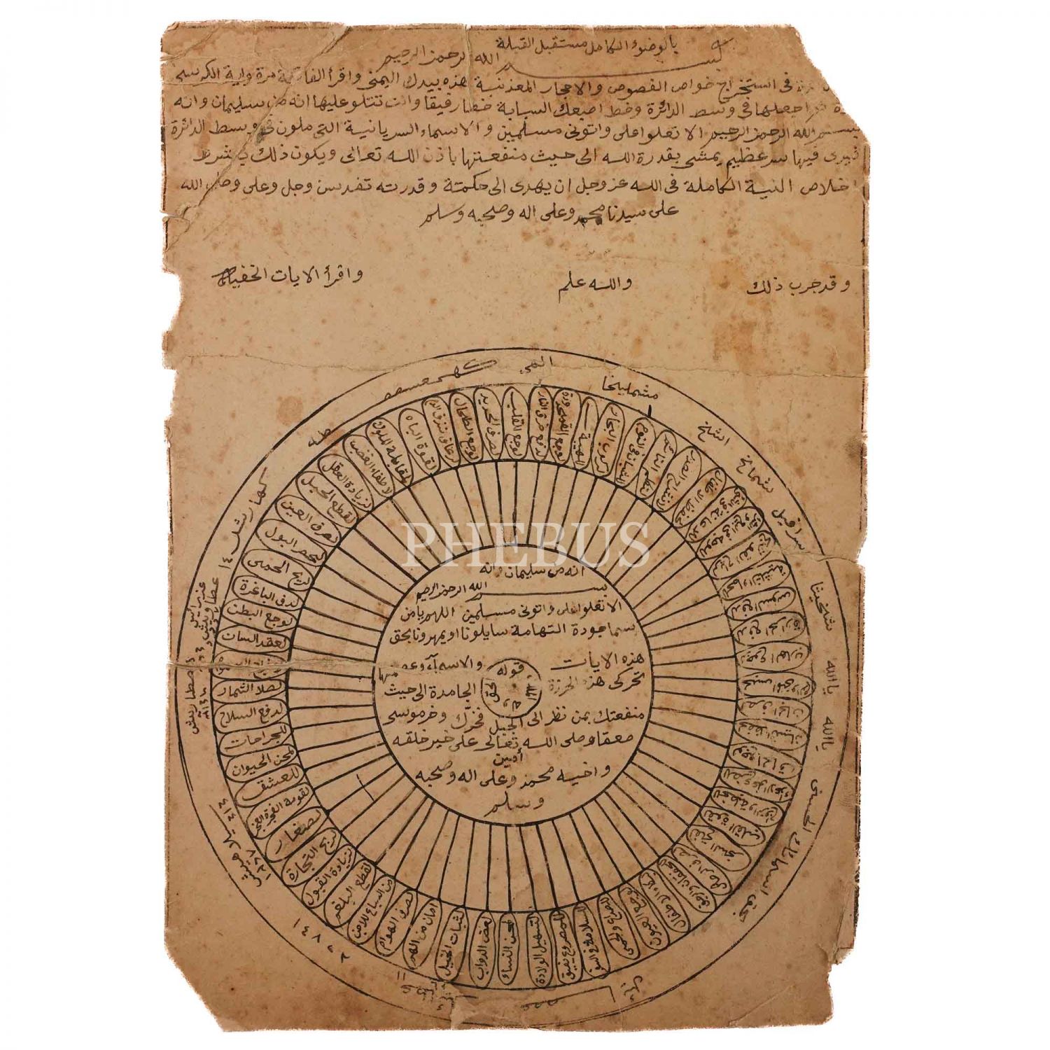 Osmanlı dönemi muhafaza duaları, büyük meleklerin isimleri, ashab-ı kehfin isimleri yazılı vefk, 27x18 cm...