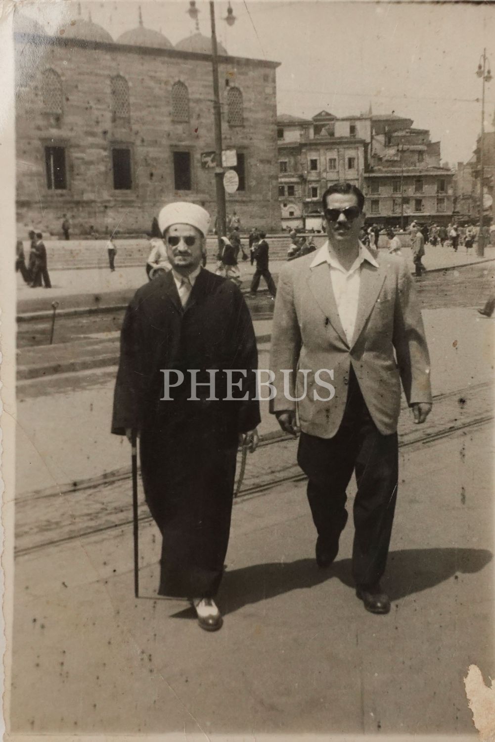 Erken cumhuriyet dönemi Yeni Camii önünde bir hocaefendi, 13x8 cm...