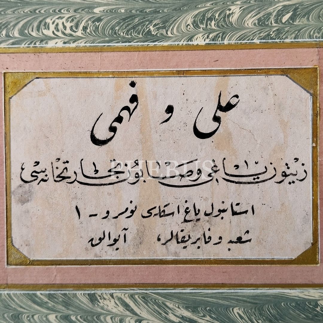 "Ali ve Fehmi Zeytinyağı ve Sabun Ticarethanesi" yazılı talik-nesih-rika yazı, 22x17 cm...