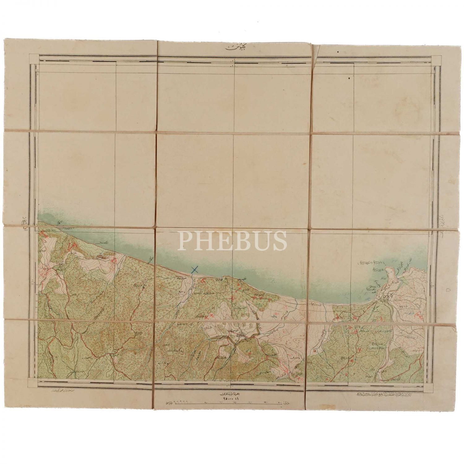Osmanlıca Kilyos haritası, Erkan-ı Harbiye-i Umumiye Matbaası, 60x48 cm...