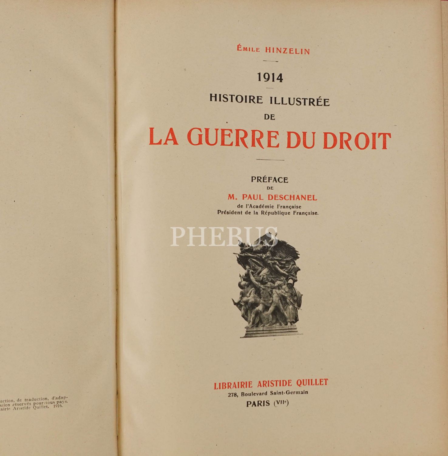 1914 HISTOIRE ILLUSTREE DE LA GUERRE DU DROIT (3 cilt takım), Emile Hinzelin, 1916, Librairie Aristide Quillet, Paris, 1200 sayfa, 22x29 cm...