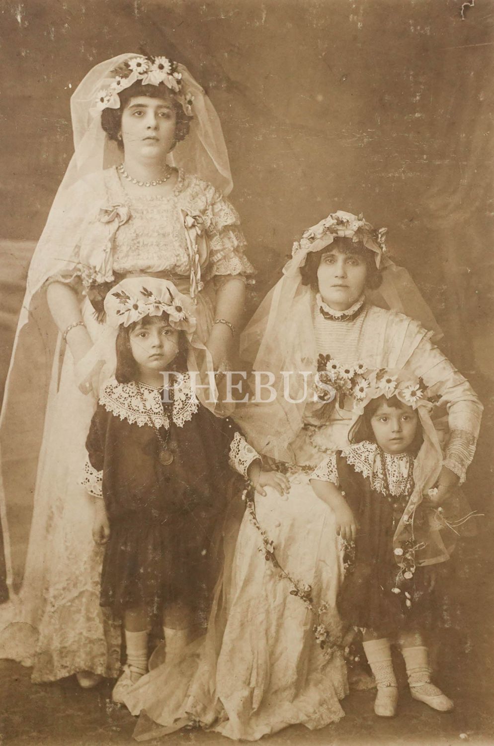 Özel bir gün için giydikleri zarif elbiseleriyle kamera karşısına geçen kadınlar ve çocuklar, 12x17 cm...