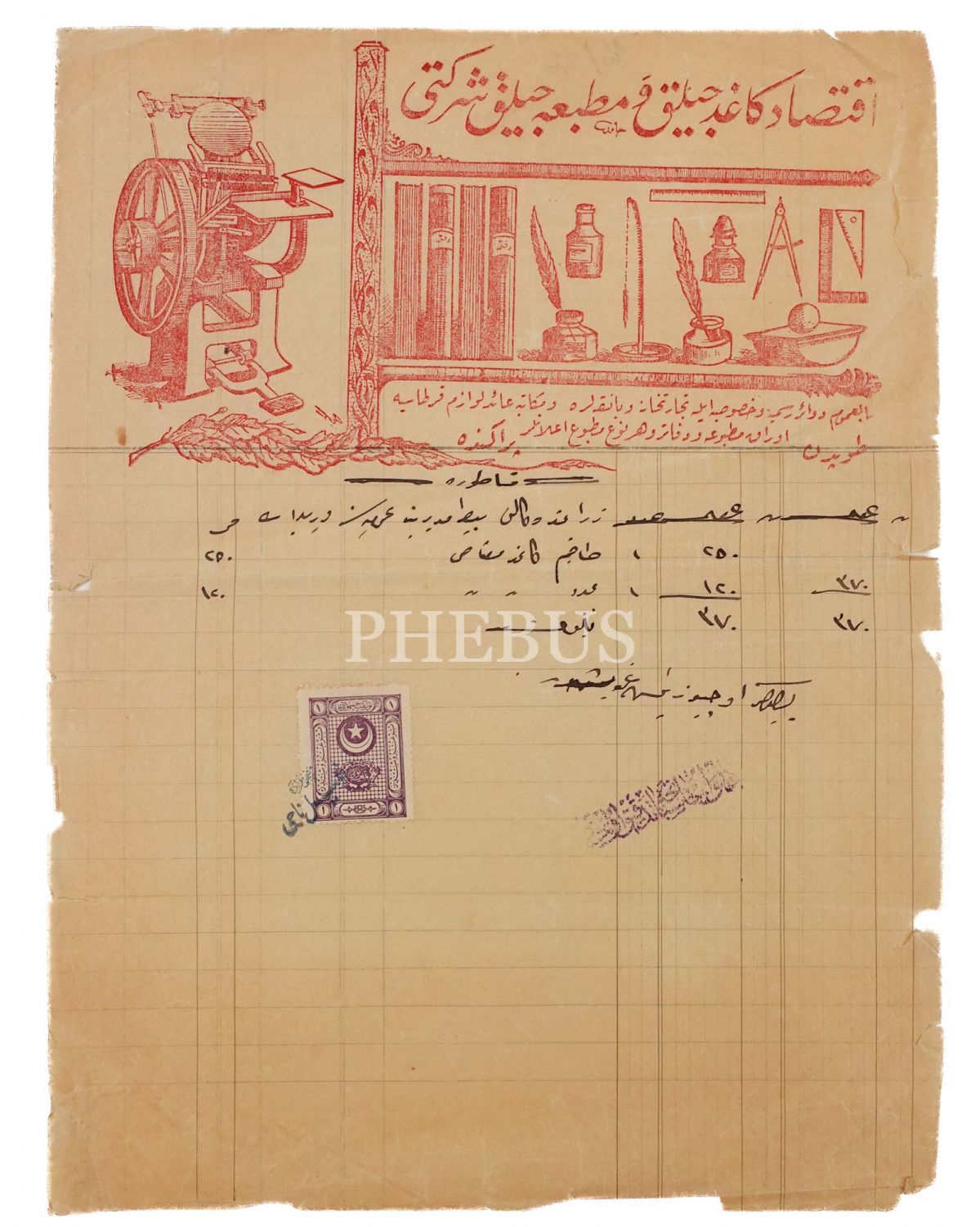 "İktisad Kağıtçılık ve Matbaacılık Şirketi" antetli fatura, 22x29 cm...