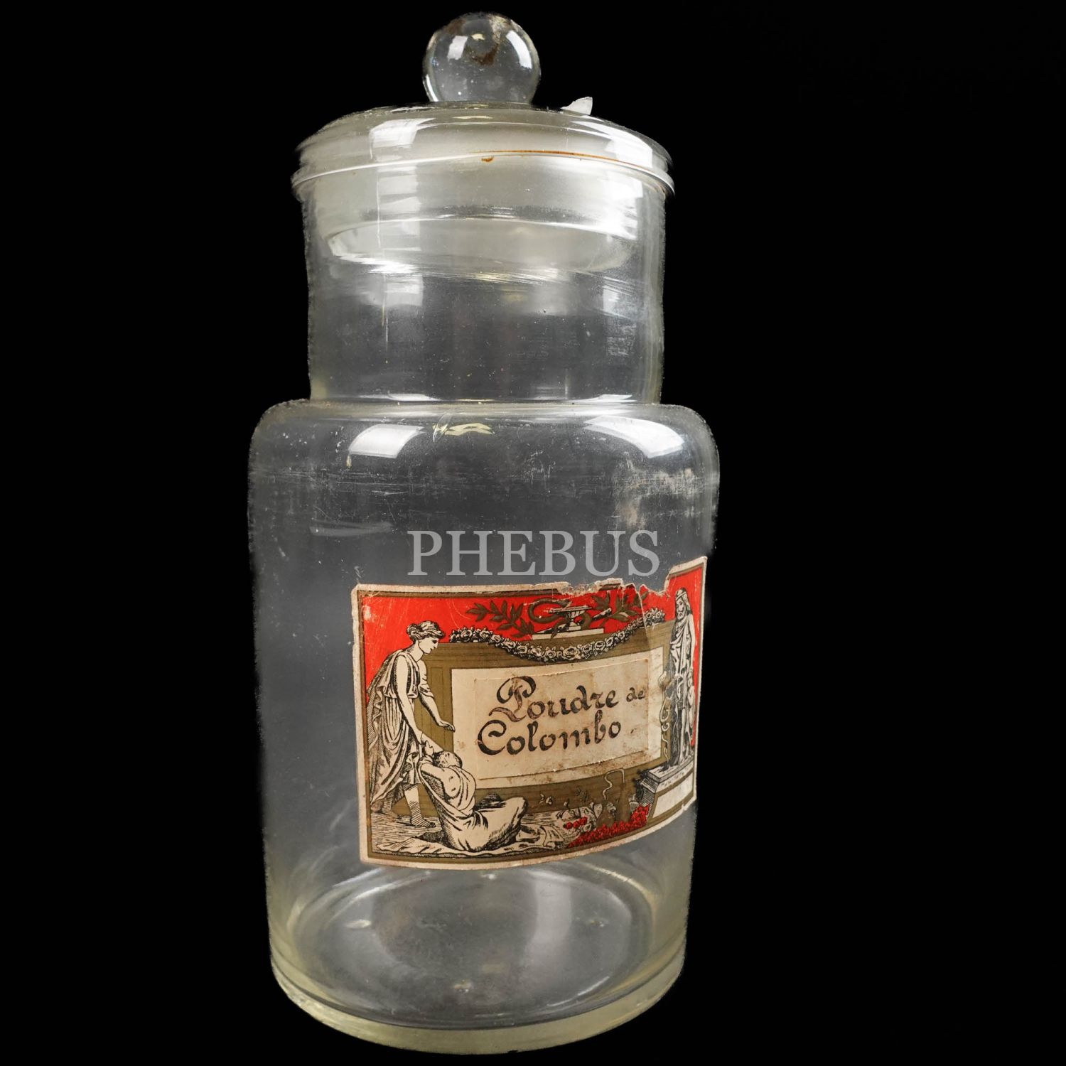 "Poudre de Colombo" ibareli etiketiyle büyük boy ilaç kavanozu, 12x28 cm...