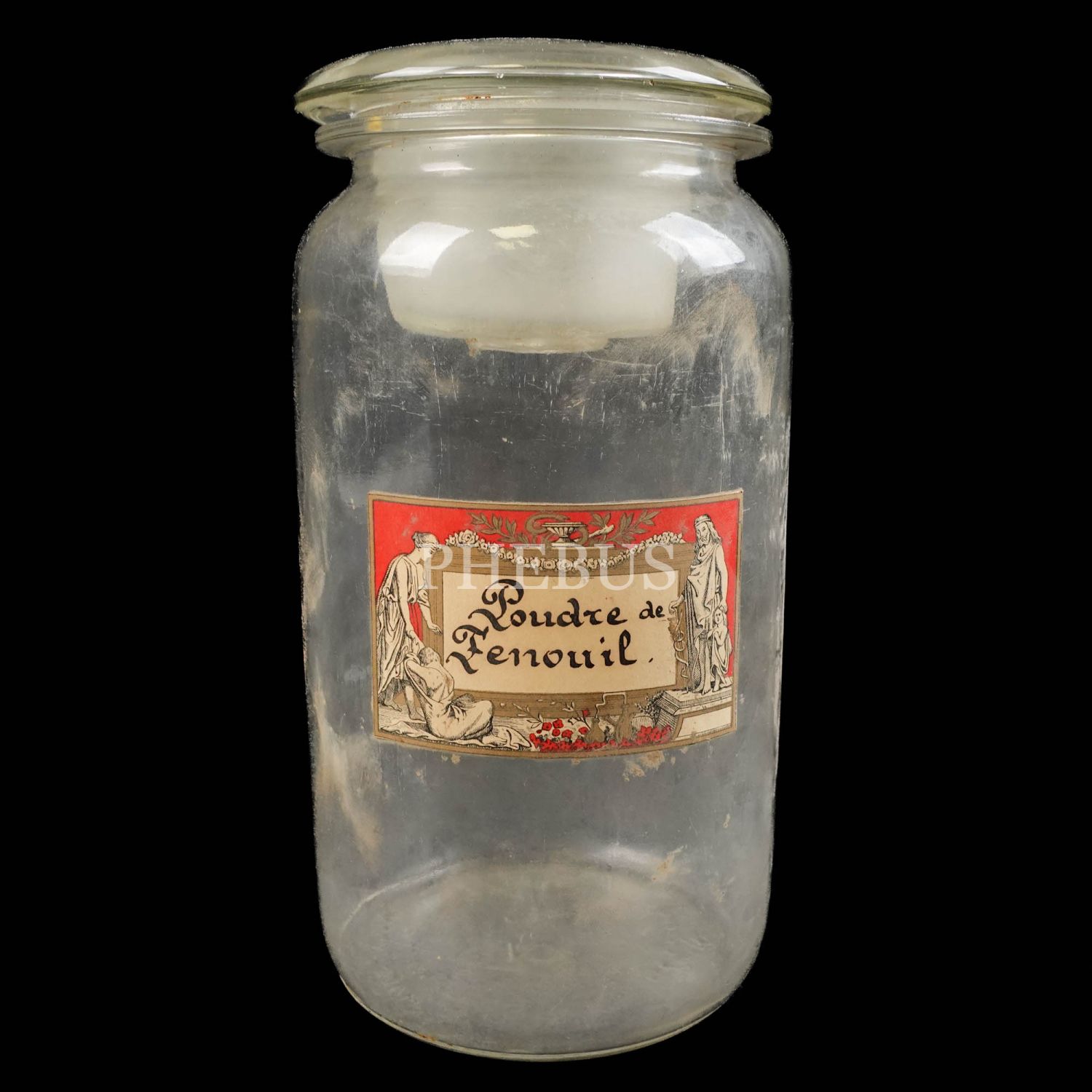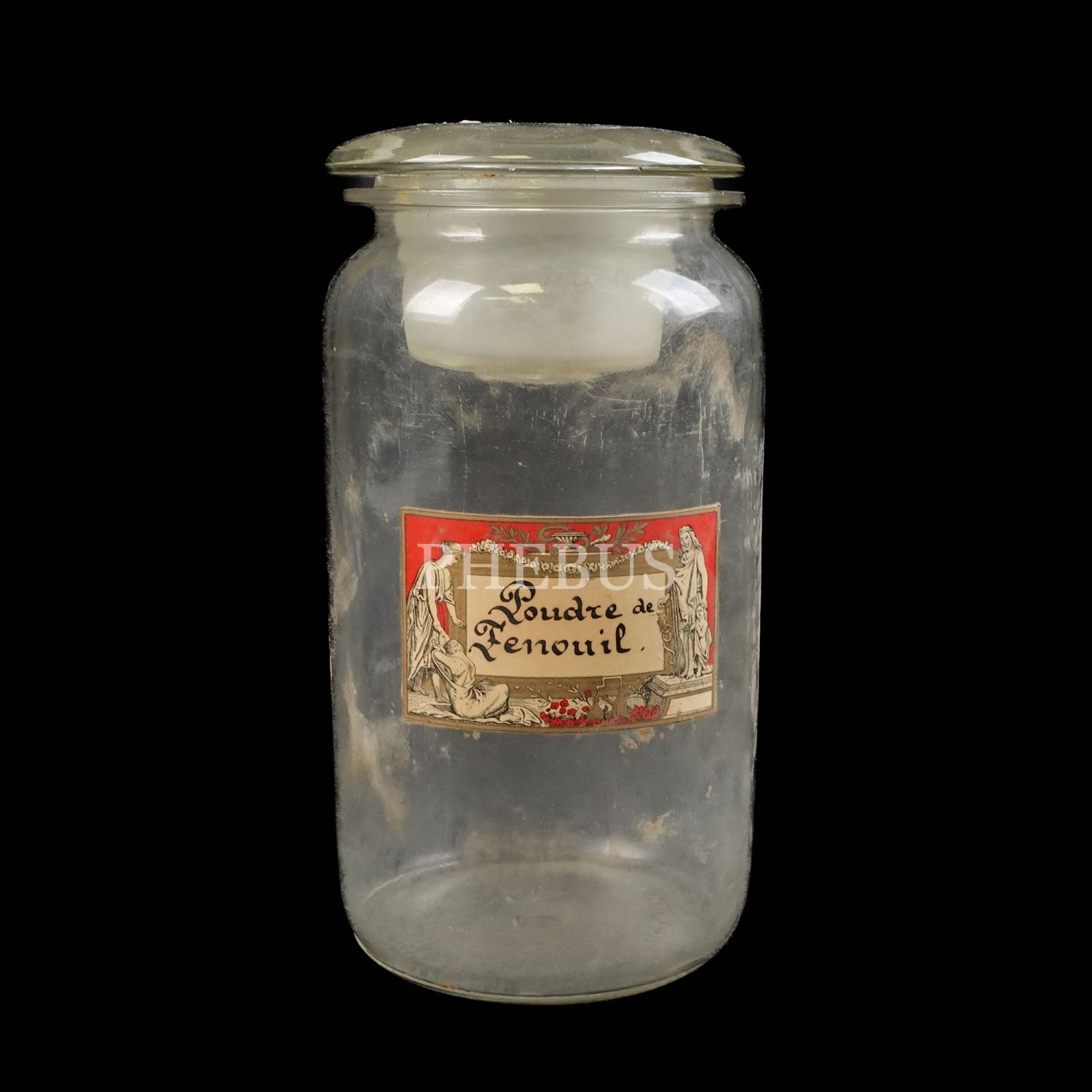"Poudre de Fenouil" ibareli etiketiyle büyük boy ilaç kavanozu, 11x23 cm...