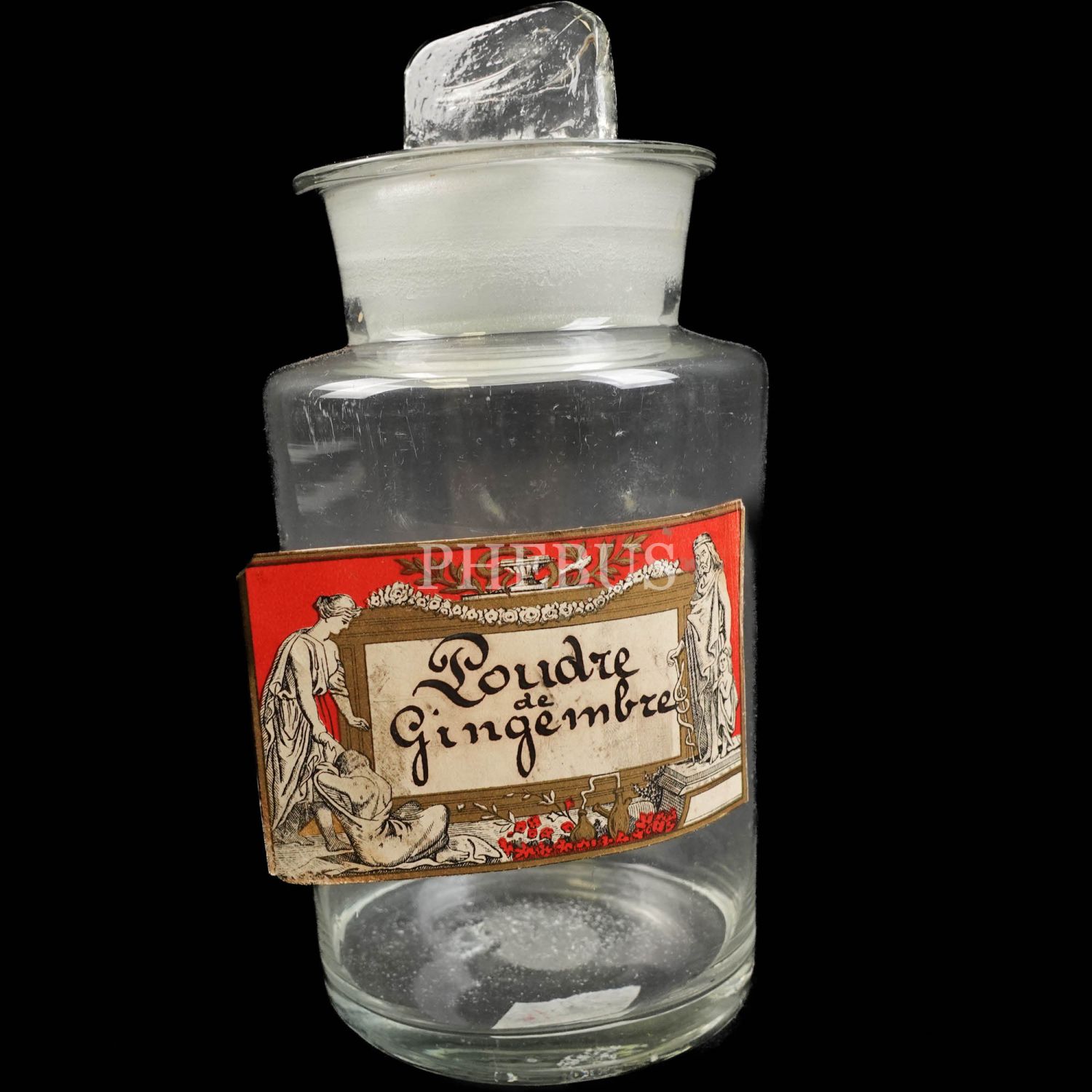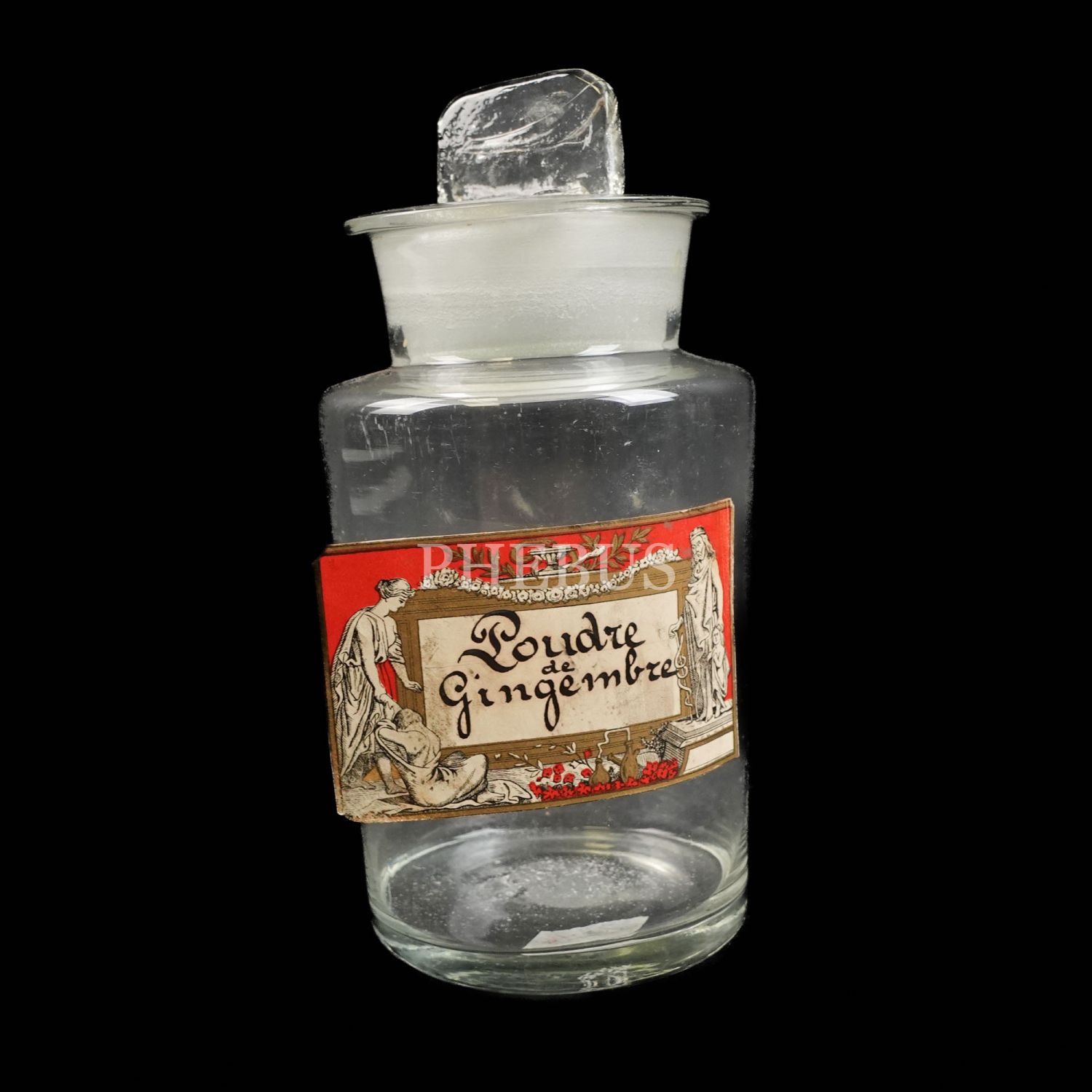 "Poudre de Gingembre" ibareli etiketiyle orta boy ilaç kavanozu, 8,5x19 cm...