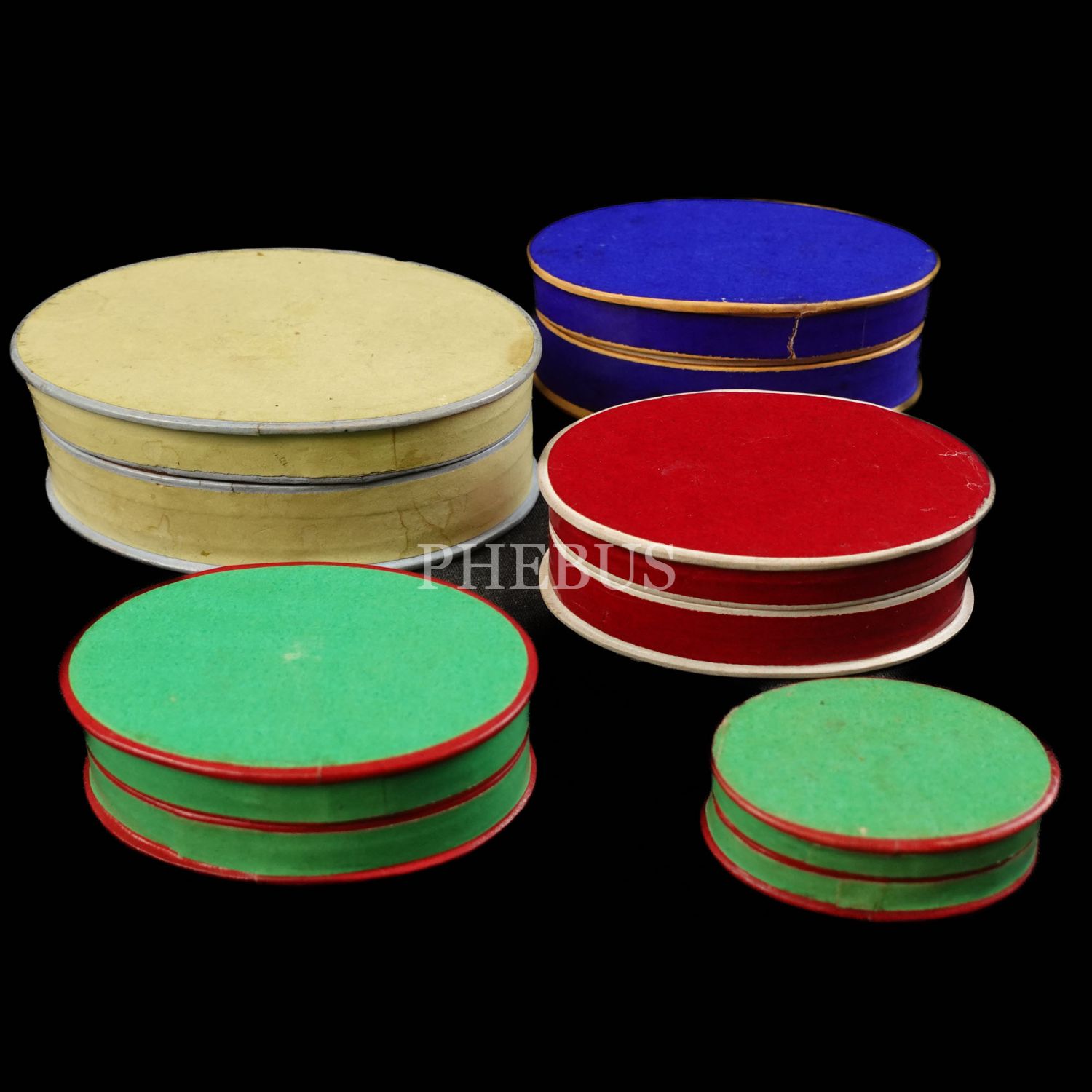 Farklı boylarda beş adet karton ilaç kutusu, en büyüğü 9x6,5x3 cm, en küçüğü 5x3x1,5 cm...