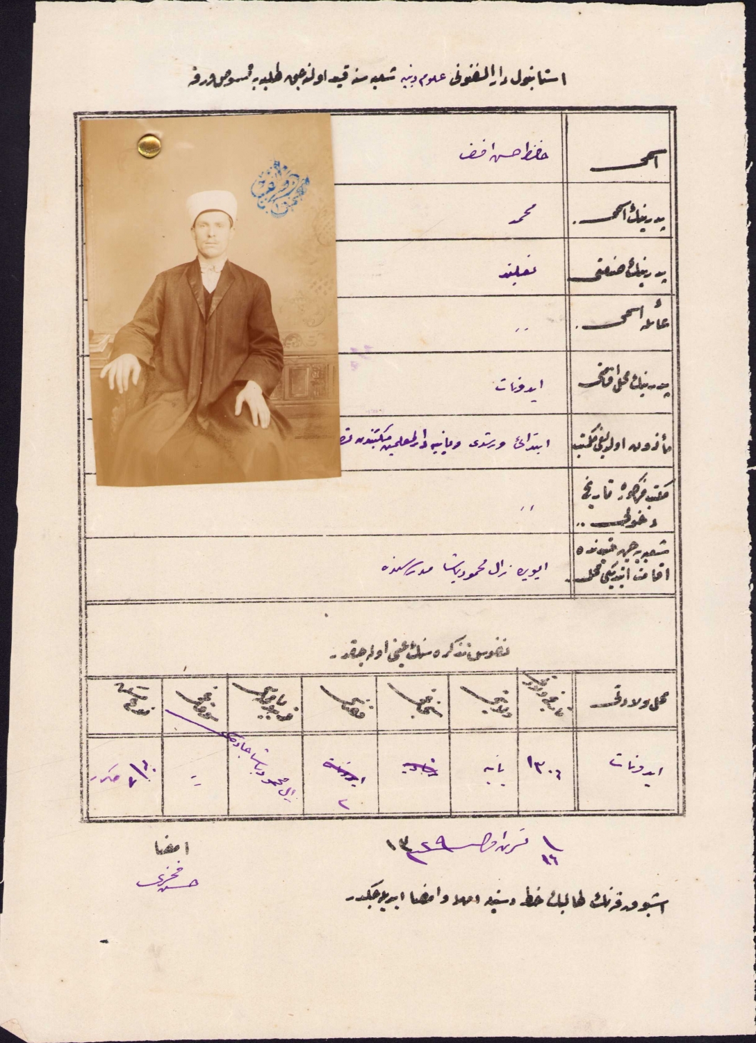 Osmanlıca İstanbul Darülfünun Ulum-ı Aliyye-i Diniyyeye kayıt olunacak Hafız Ahmed Efendi isimli talebeye mahsus varaka, 1329, 20x28 cm