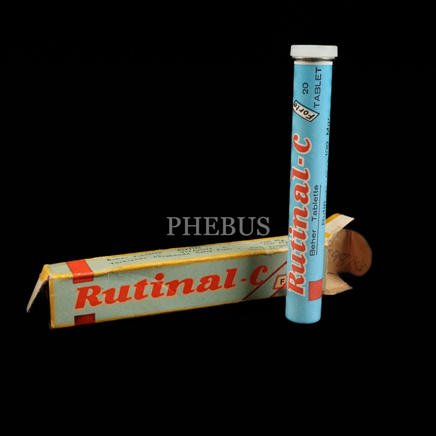 Prospektüsün de yer aldığı orijinal kutusunda Ruitinal-C tüpü (dolu), Dilmen Laboratuarı - İstanbul, 1951 ruhsatlı, 8 cm...