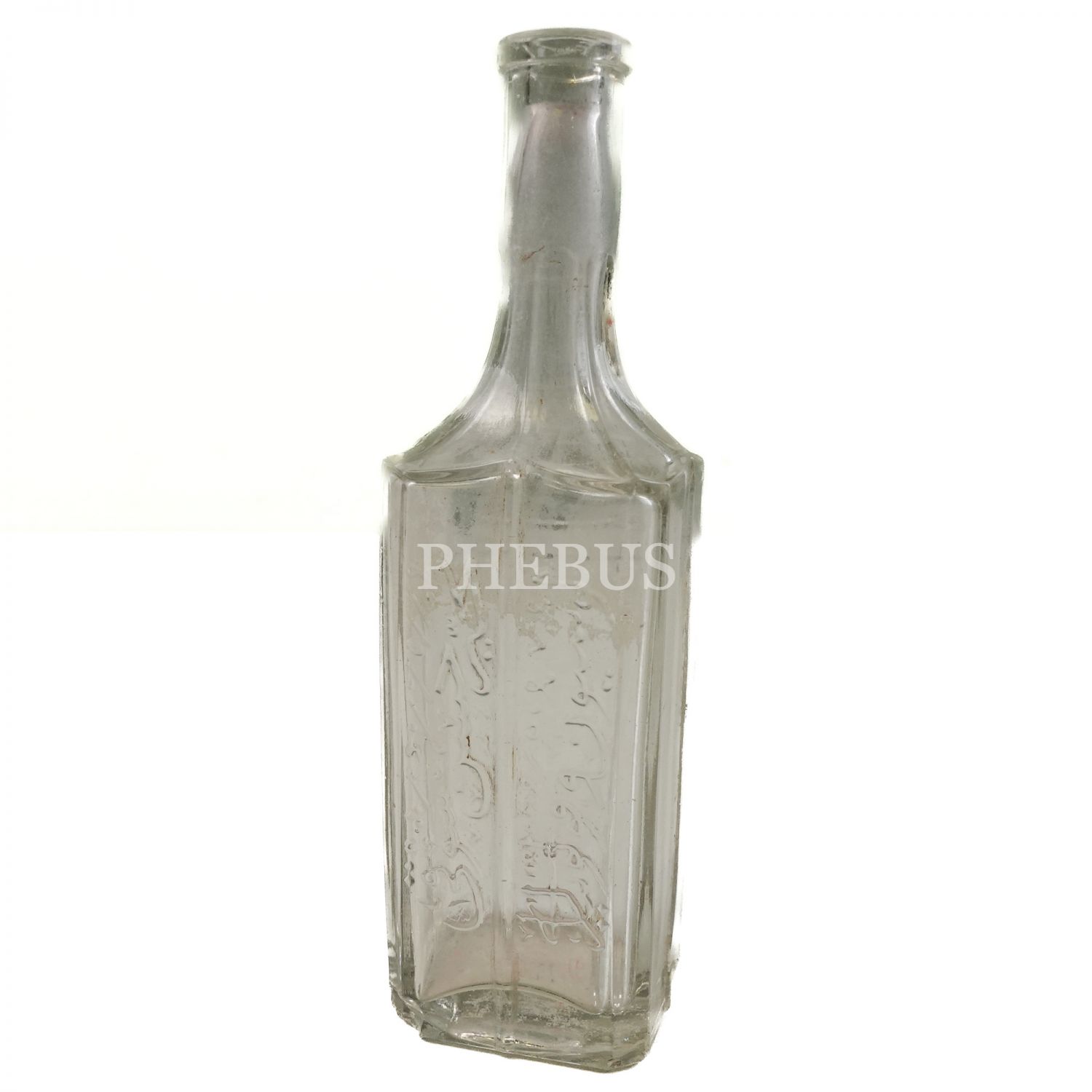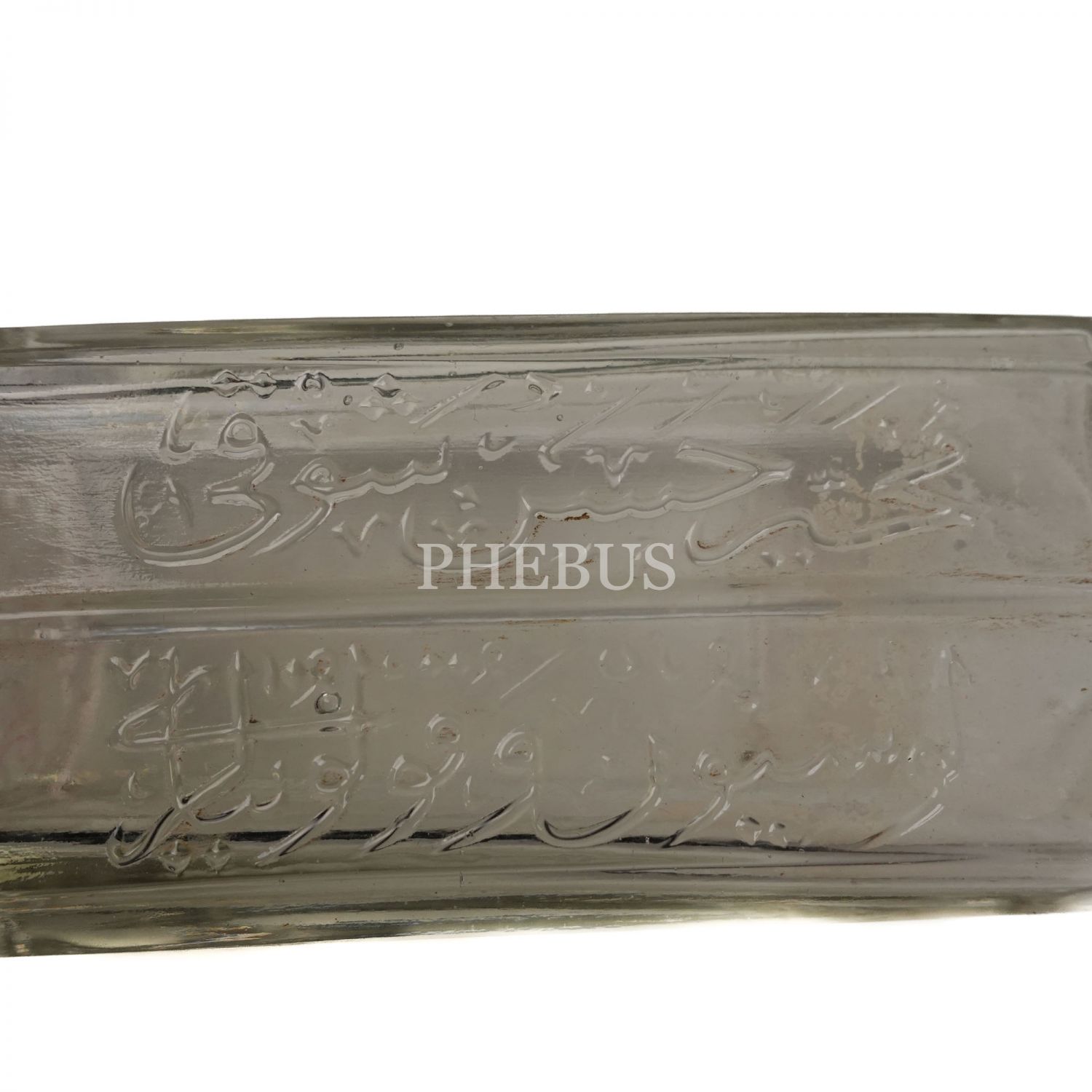 Osmanlıca "Muhayyer Hüsnü Şevki Losyon ve Kolonyaları" kabartma yazılı şişe, 19x5x5 cm...
