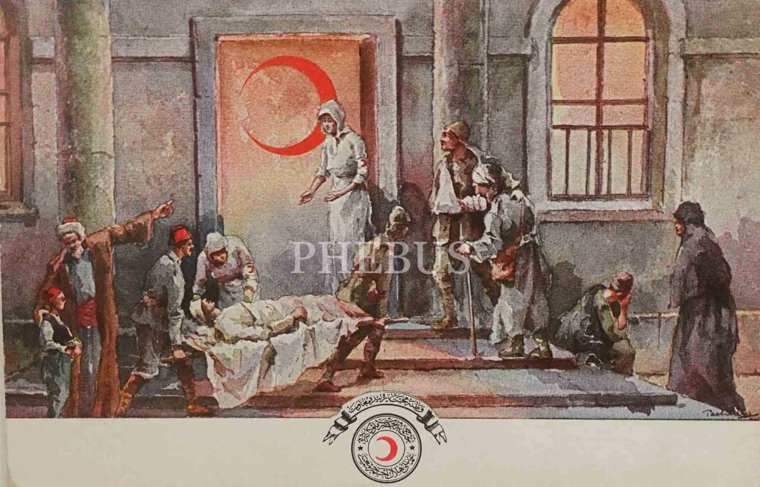 Hilal-i Ahmer Cemiyeti´ne bağlı bir hastaneye getirilen yaralı Türk askerleri, ed. Hilal-i Ahmer Cemiyeti, 14x9 cm...