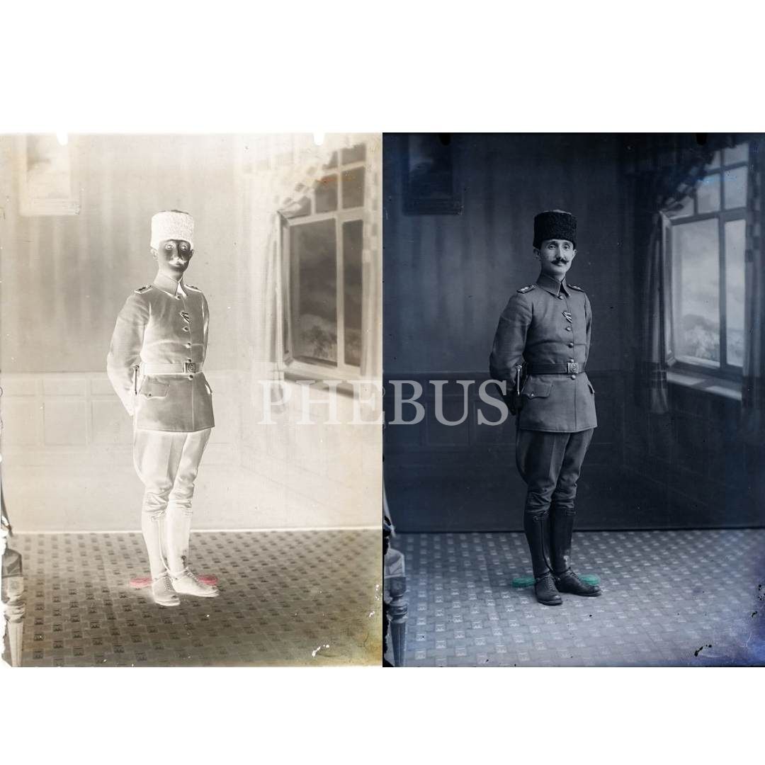 Madalyalı bir Türk subayının stüdyoda aldırdığı portre fotoğrafının cam negatifi, 12x17 cm...