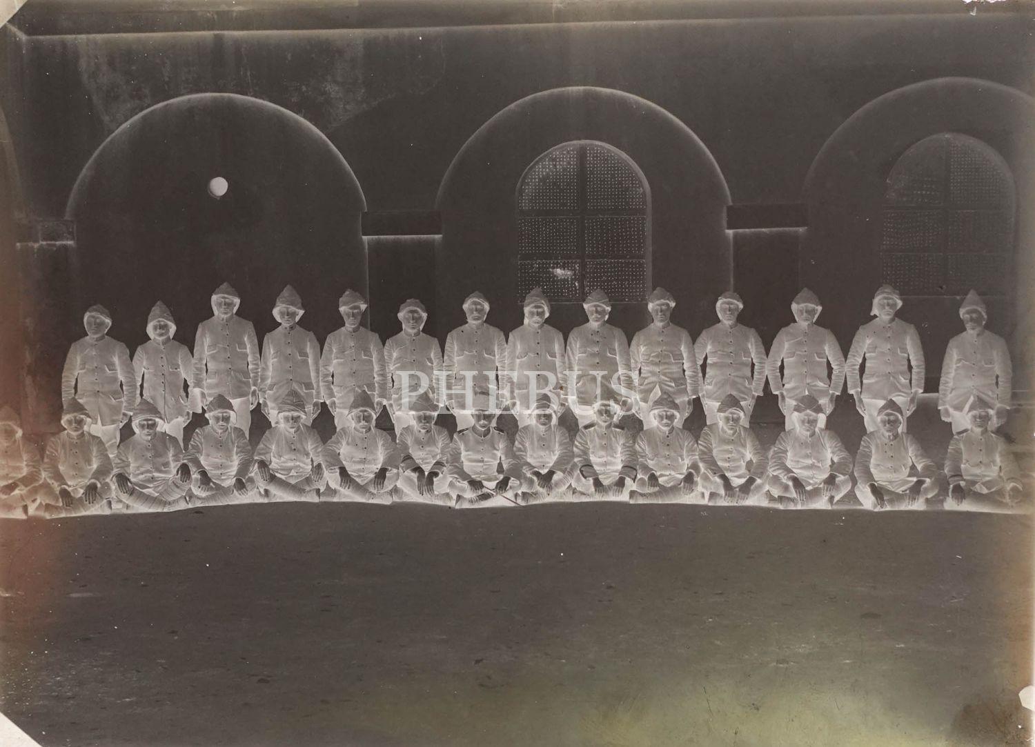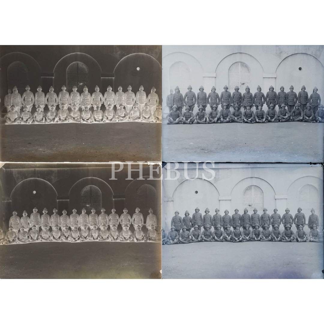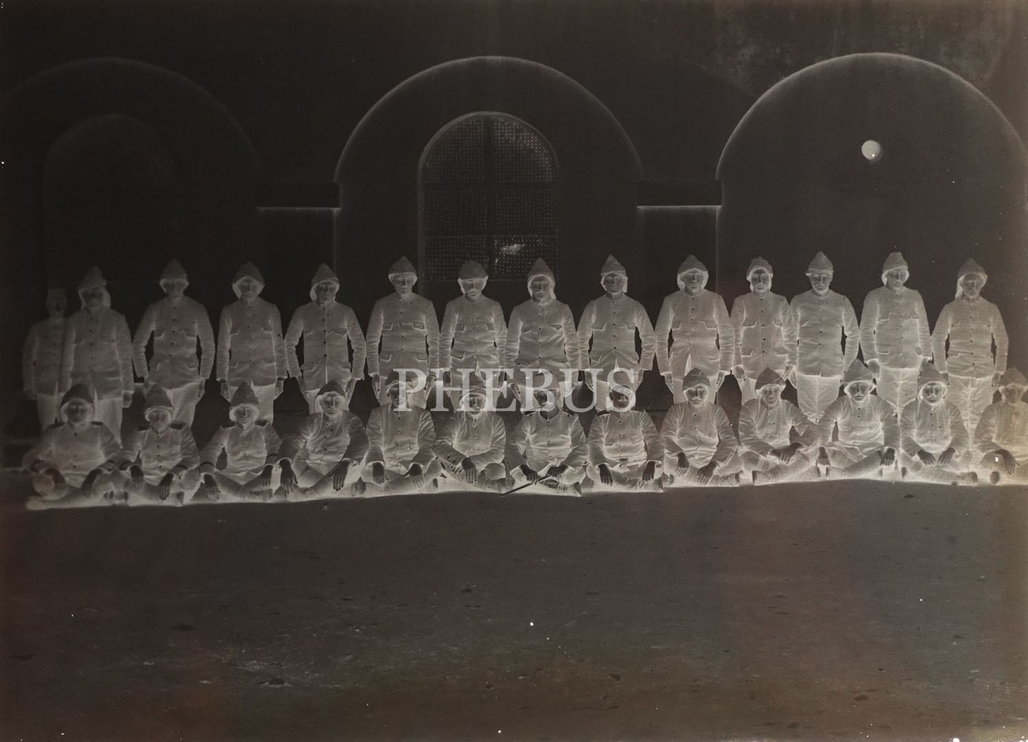 Enveriye (Kabalak) serpuşlu Türk neferleri ile subaylarının kışlalarında çekildikleri toplu hatıra fotoğraflarının cam negatifleri (2 adet), 18x13 cm...
