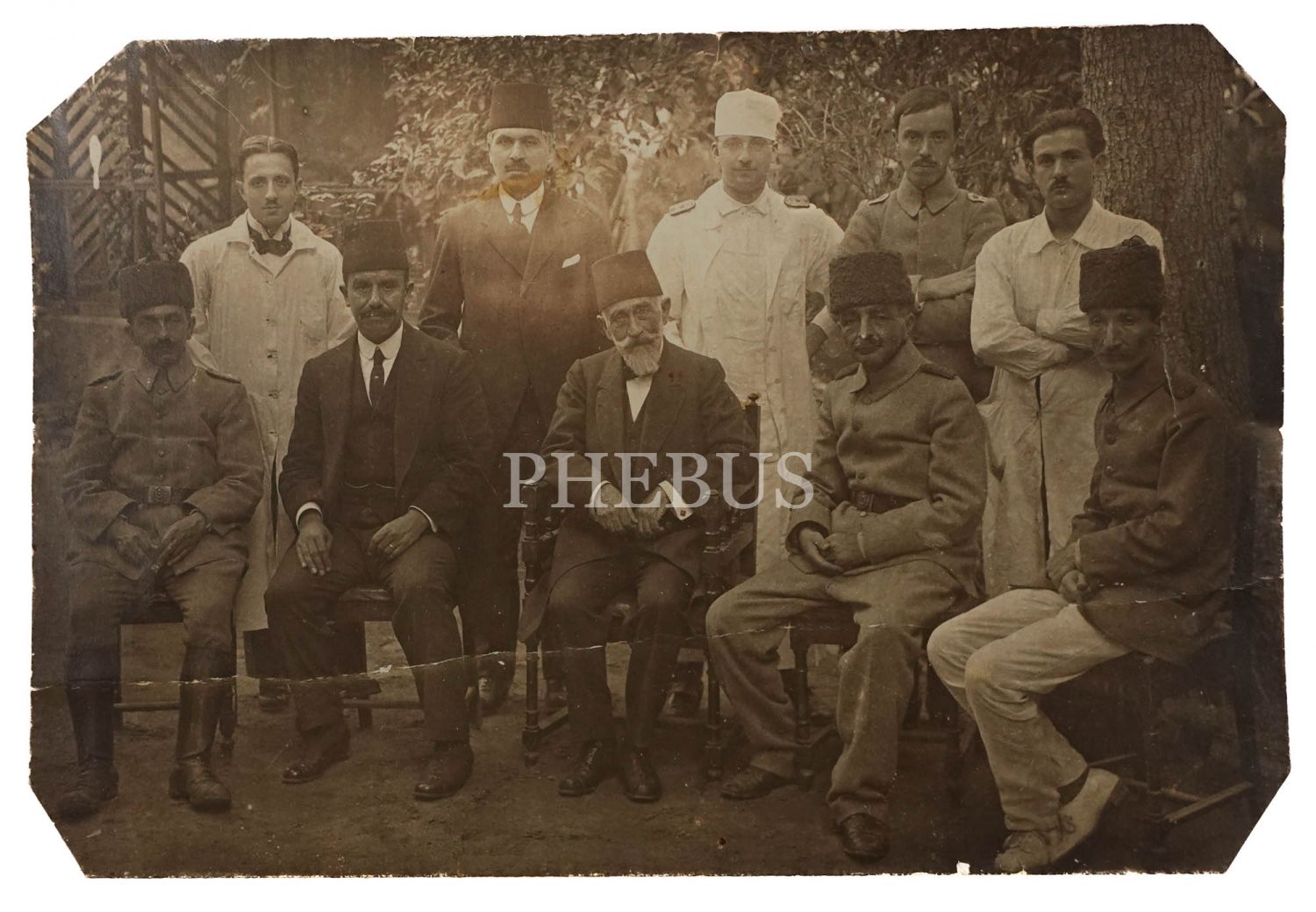 Cihan Harbi yıllarından sivil ve askeri bir topluluğun hatıra fotoğrafı, 14x9 cm...