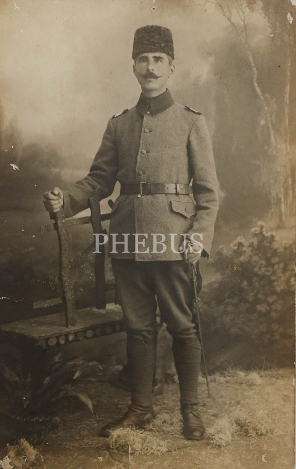 Cihan Harbi yıllarından kılıcıyla poz veren bir Türk subayı, Photo Resna, Stamboul, 9x14 cm...