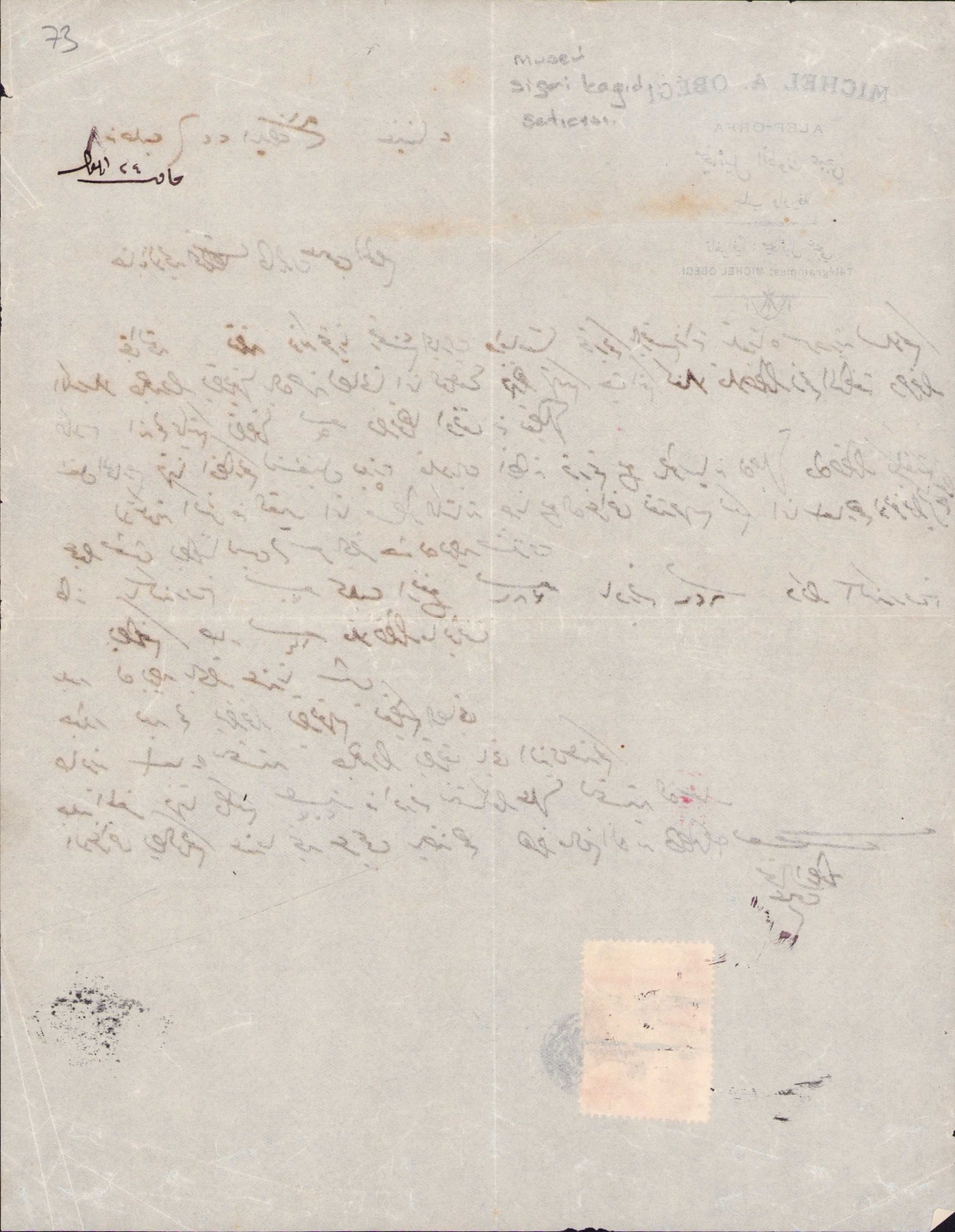 Osmanlıca - Fransızca Halep Urfa Michel A. Obegi sigara satıcısı antetli doküman, 1910 tarihli, 20x26 cm