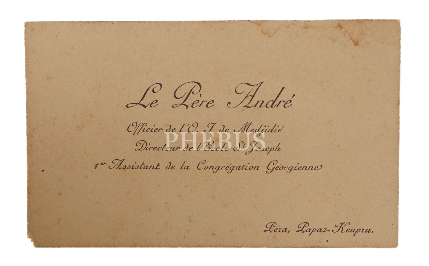 Gürcü Cemaati memurlarından Le Pere Andre´ye ait kartvizit, Pera, Papaz-Keupru adresli, 10x6 cm...