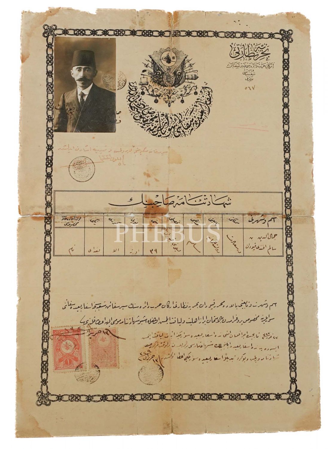 Bahriye Nezareti tarafından Kaptan Selim Efendi´ye verilen esfar-ı baide sefaini süvariliği (uzun yol gemisi kaptanlığı) diploması, 29x40 cm...