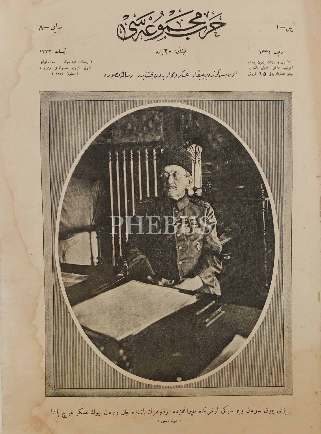Türk dostu Goltz (Golç) Paşa´nın vefatından önce çekilen son fotoğrafına kapağında yer veren HARP MECMUASI´nın 8. sayısı, Nisan 1332, 25x34 cm...