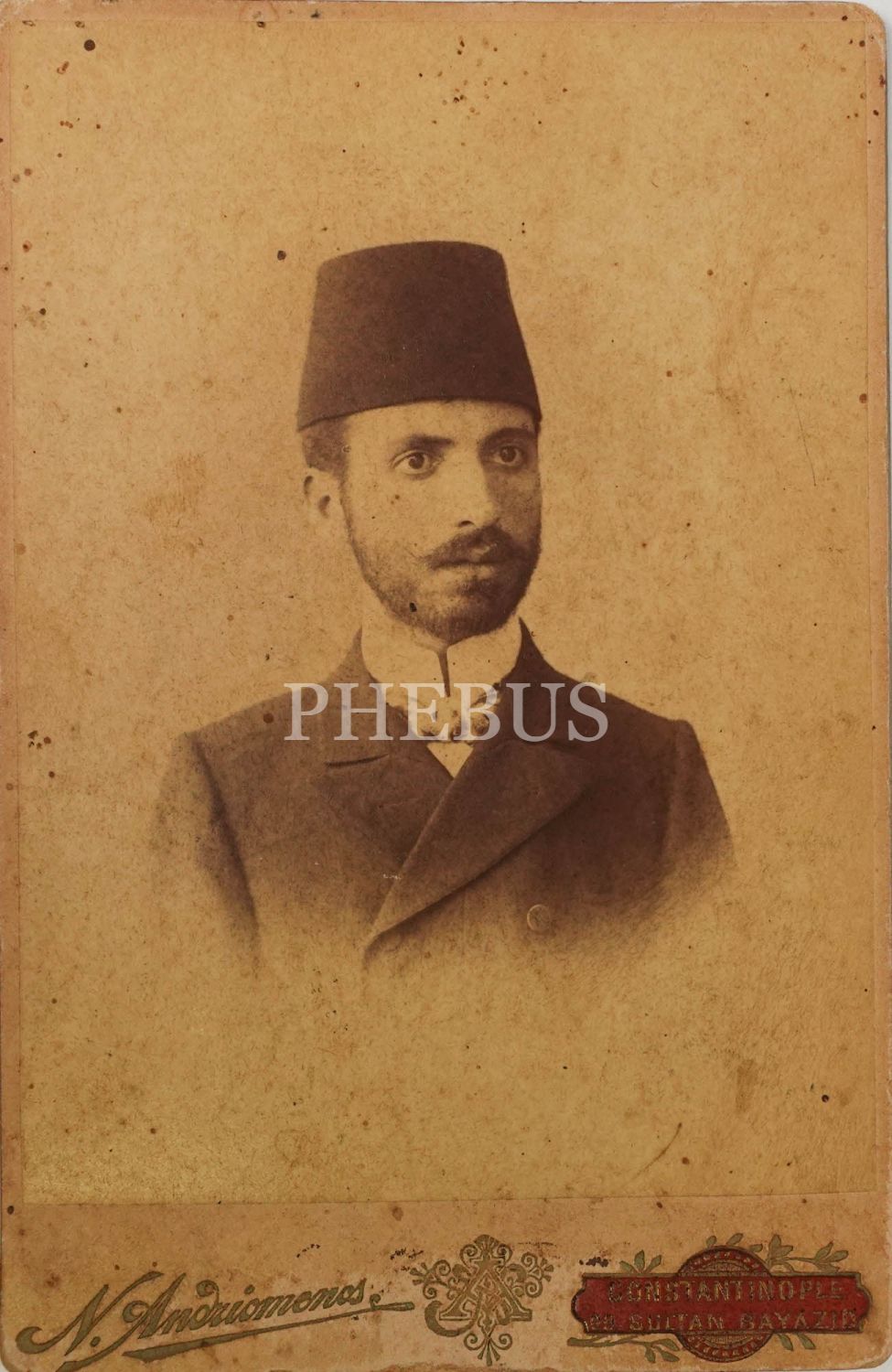 Papyonlu bir beyefendinin portre fotoğrafı, Nicolas Andriomenos, Constantinople, 11x17 cm...