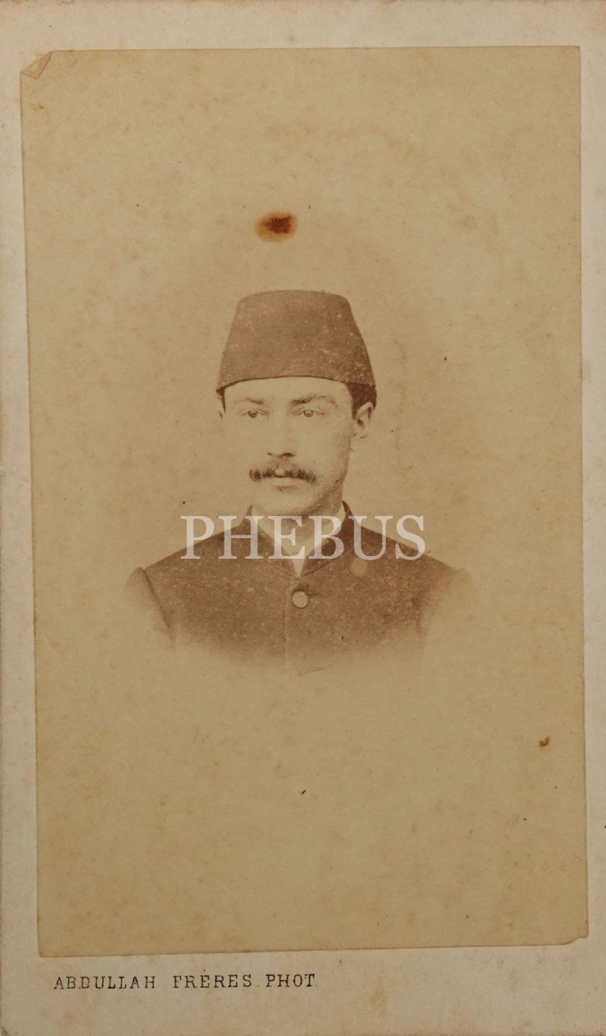 Fesli bir beyefendinin CDV (kartvizit) boy portre fotoğrafı, Abdullah Freres, Constantinople, 6,5x10 cm...