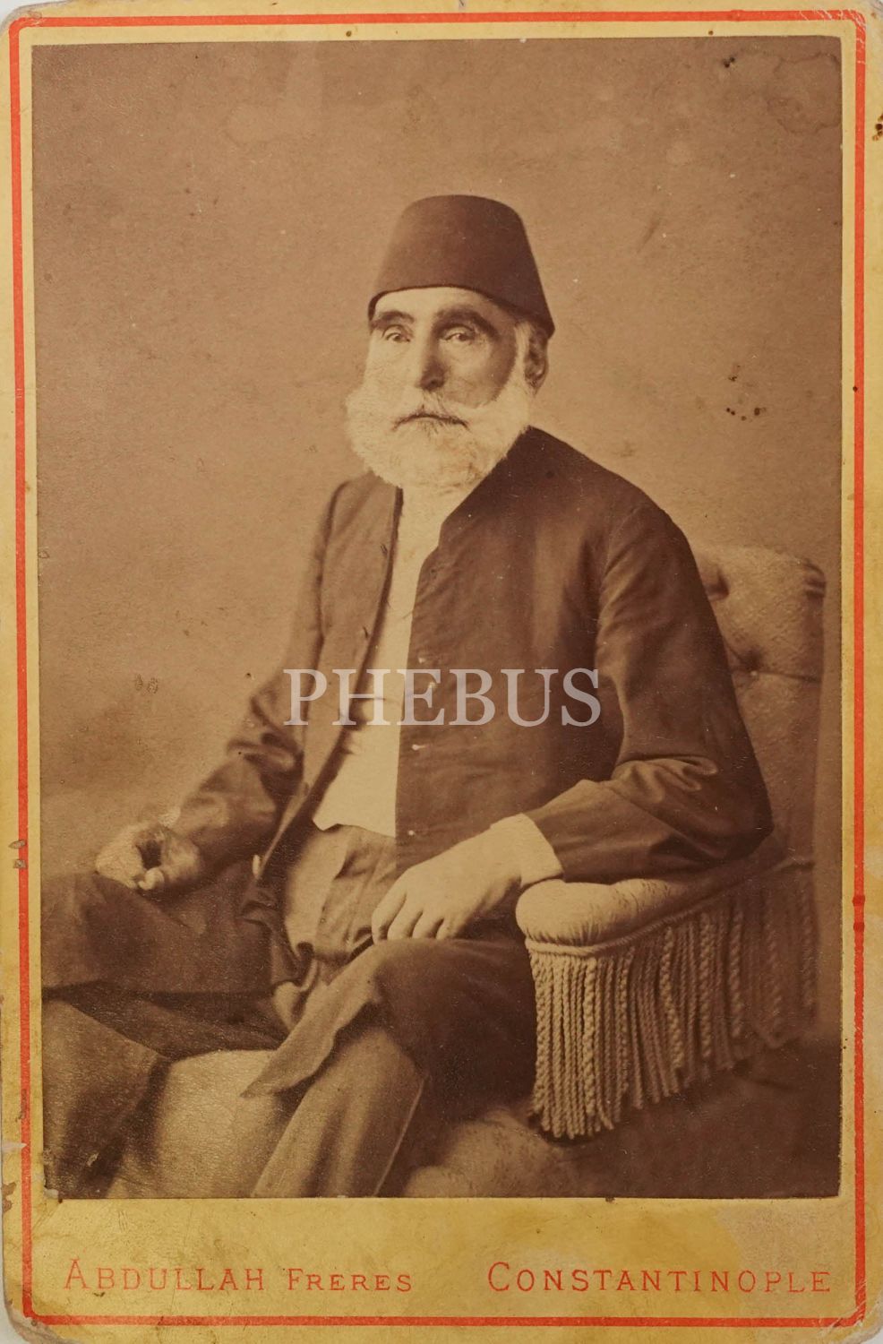 Aziziye fesli, sakallı bir yaşlı adamın portre fotoğrafı, Abdullah Freres, Constantinople, 11x17 cm...