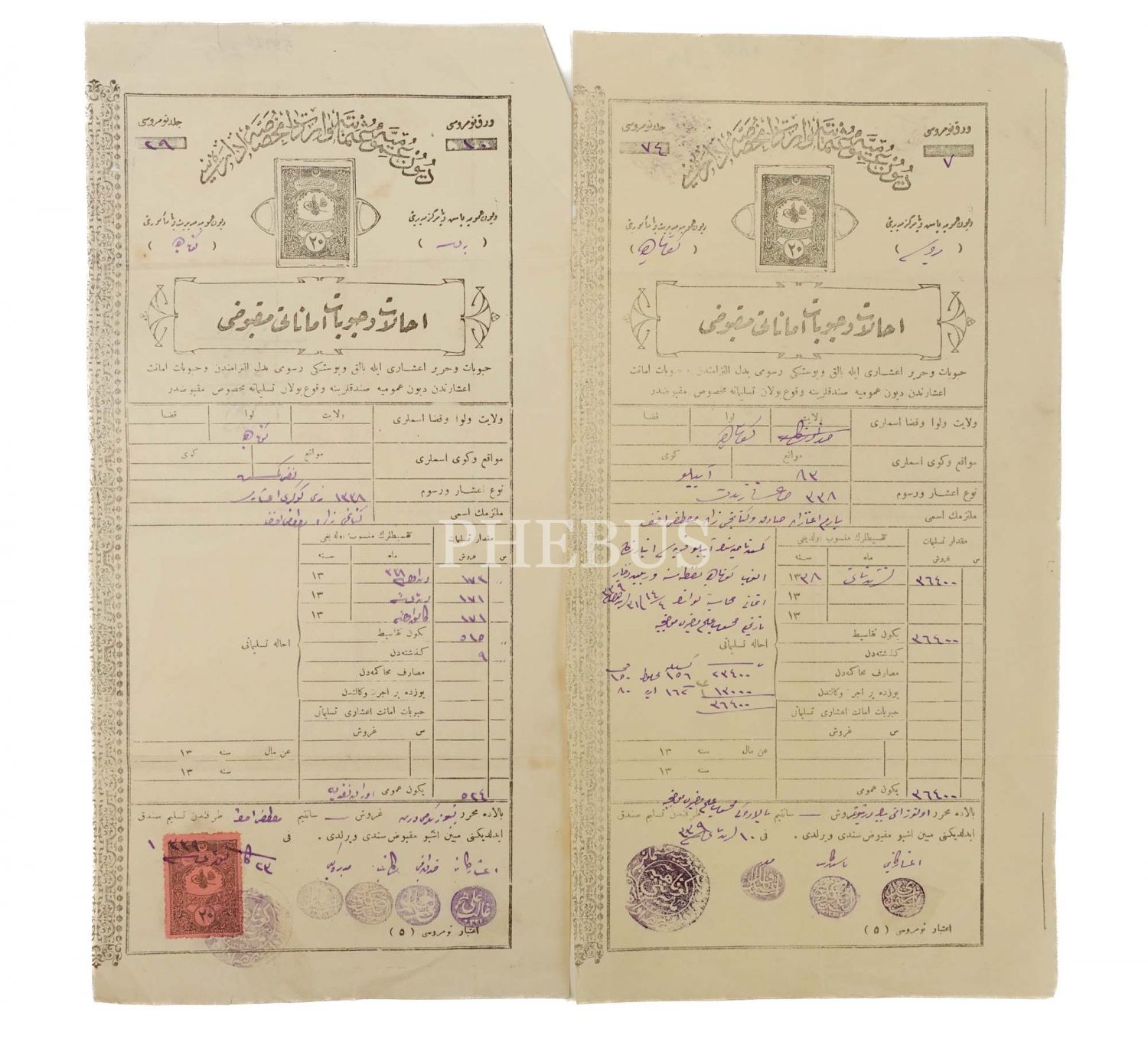 Duyun-u Umumiye makbuzu, 2 adet, 17x34 cm...