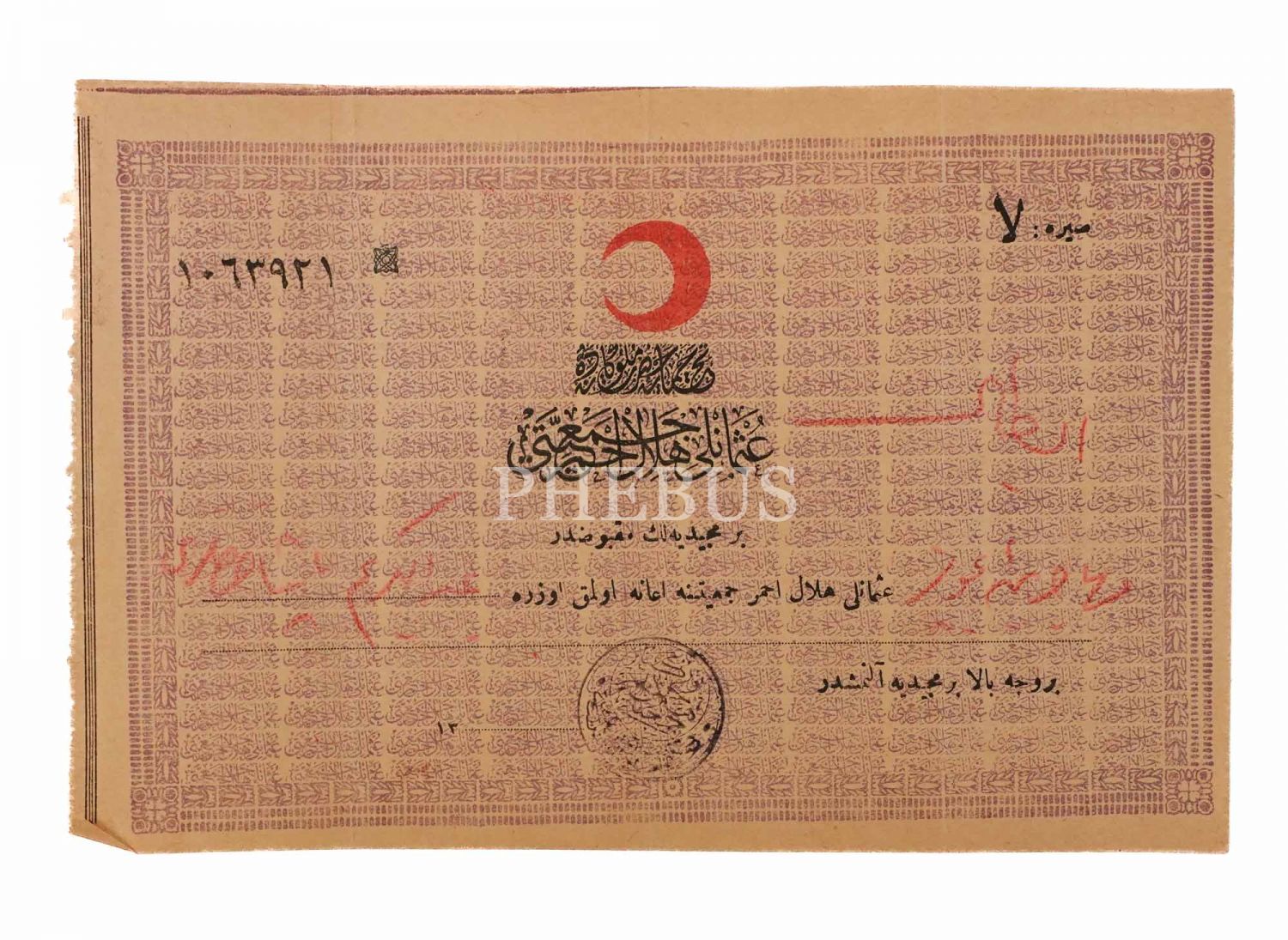 Osmanlı Hilal-i Ahmer Cemiyeti İane Makbuzu, 21x14 cm...