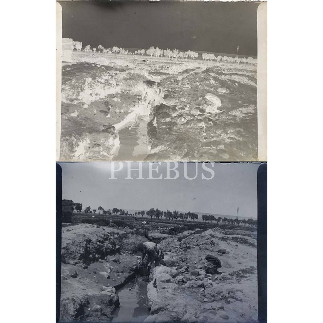 Dereden su çeken yaşlı bir adamın cam negatif fotoğrafı, 12x9 cm...