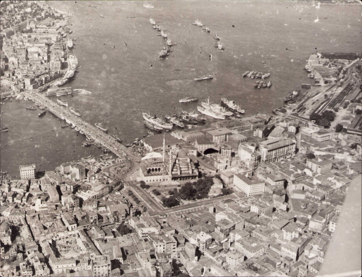 İstanbul hava fotoğrafı, Eminönü Galata köprüsü ve civarı 1960, 24x16 cm