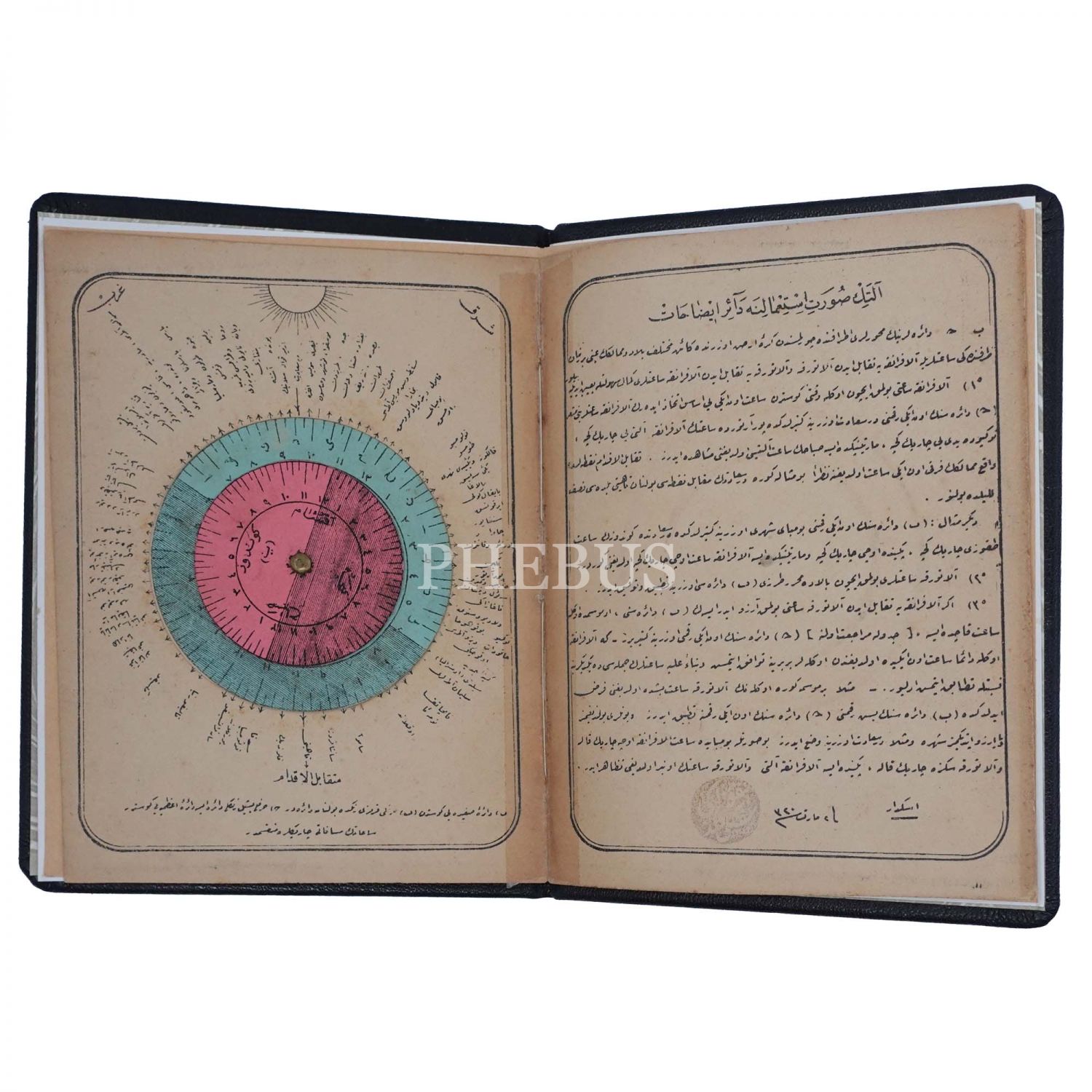 Alaturka saatlerini tesbit etmeye mahsus Regülatör isimli Alet Şekli." Eserin ikinci sayfasında müellifin mührü bulunmaktadır. (Sofokli veled-i Nikolaki). Eser katlanabilir şekilde tek tarafı baskı bir tarafı boş olarak 4 sahife şeklinde katlanıp, raptiye ile hareketli hale getirilmiştir.