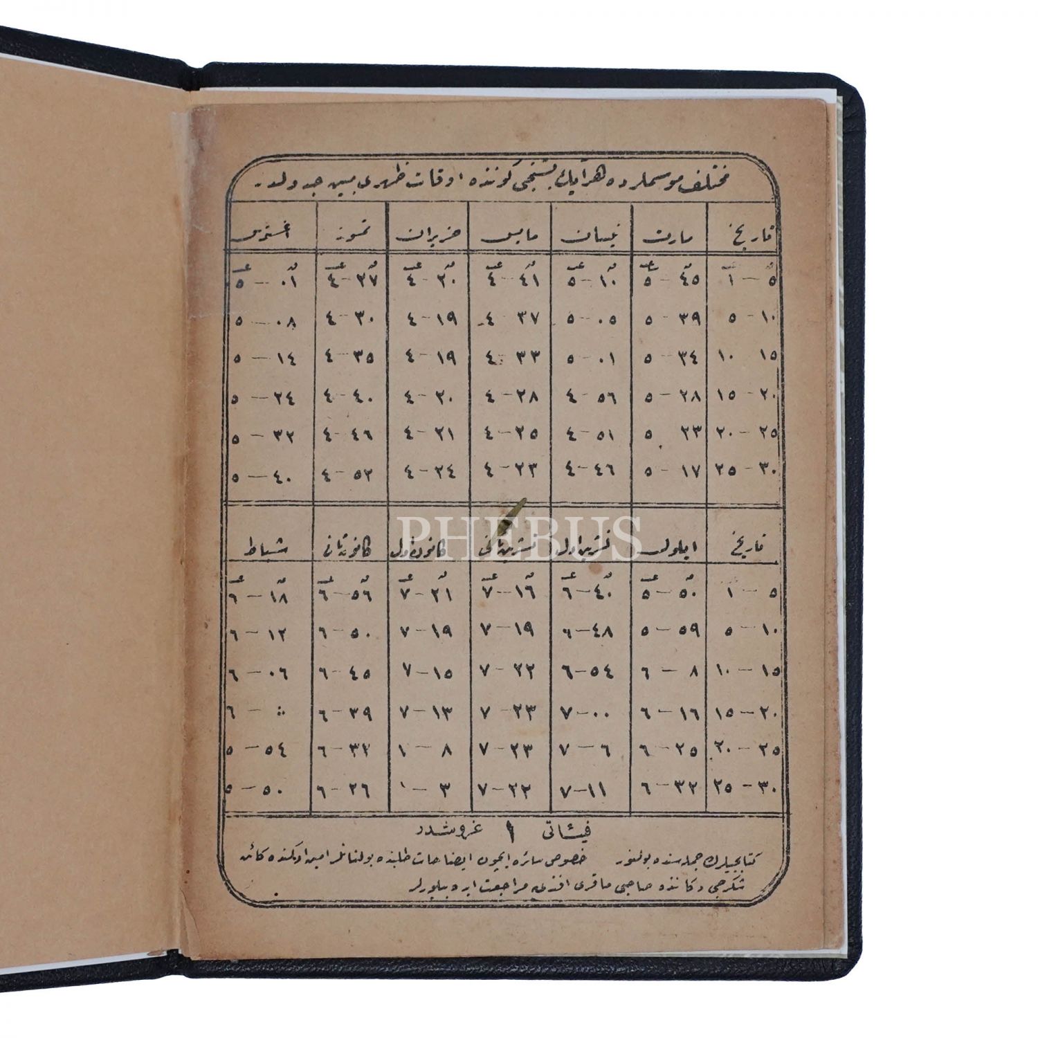 şehirlerin isimleri ile denk geldikleri saatleri tafsilatlı olarak gösteren cetveller. 4.Sayfada muhtelif mevsimlerde her ayın beşinci gününde öğle vaktinin saat kaça denk geldiğini gösteren tablo.
