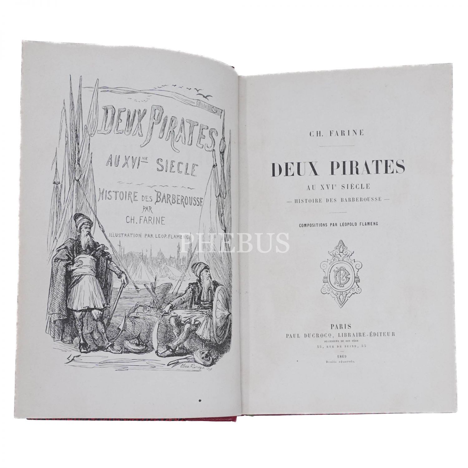 DEUX PIRATES AU XVIE SIECLE -HISTOIRE DES BARBEROUSSE-, C. H. Farine, 1869, Paul Ducrocq, Libraire-Editeur, Paris, 377 sayfa, 17x27 cm...