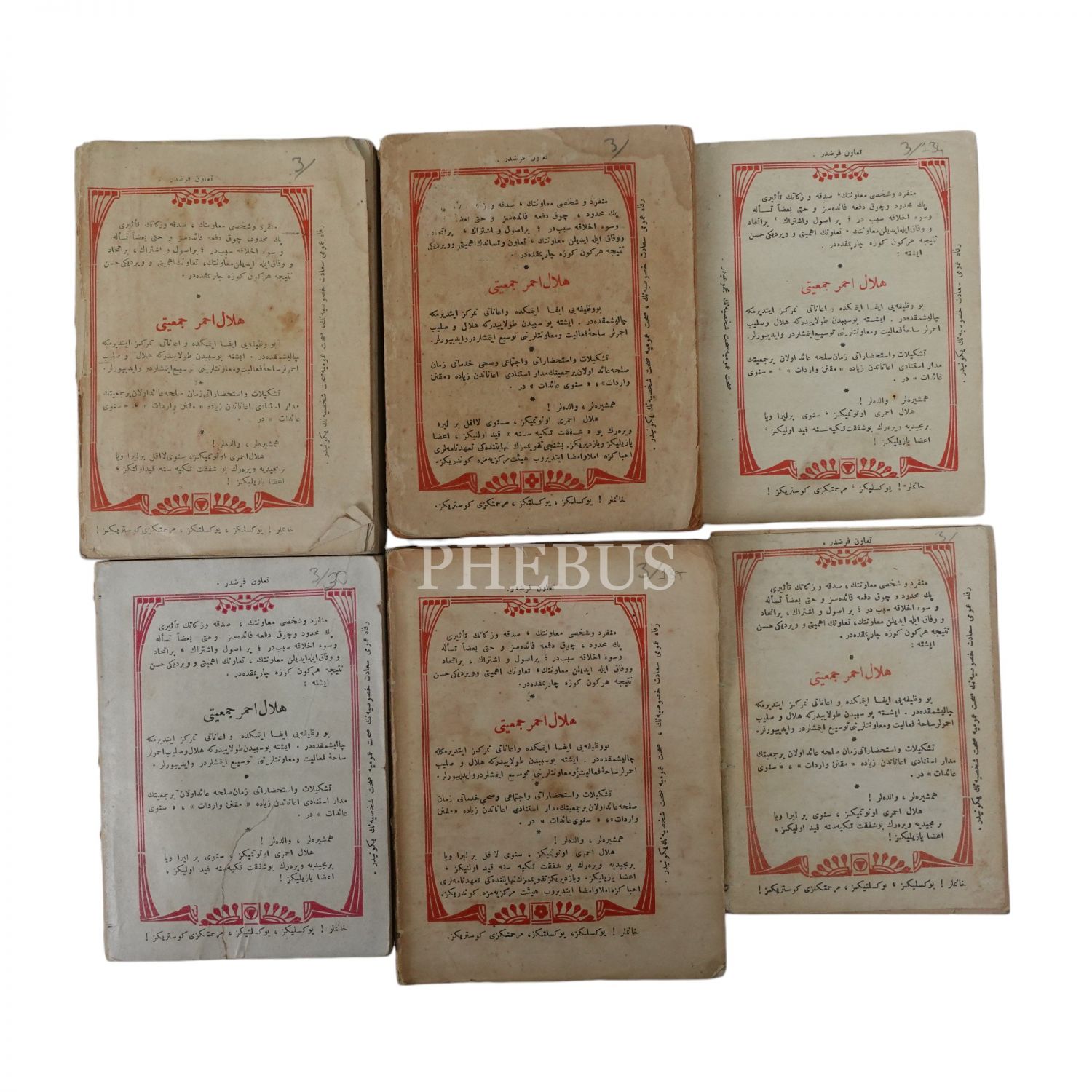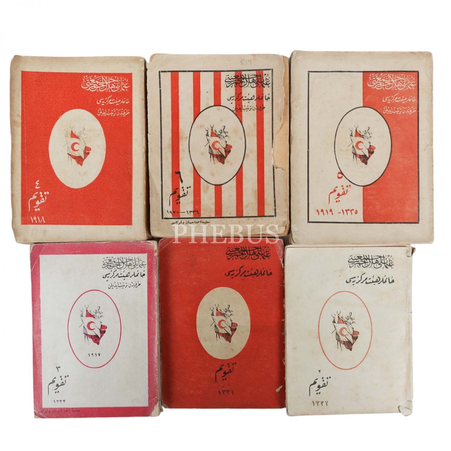 Hilal-i Ahmer Cemiyeti Hanımlar Heyet-i Merkeziyesi tarafından 1918-1920 seneleri arasında yayımlan 6 adet takvim, 10x13 cm...