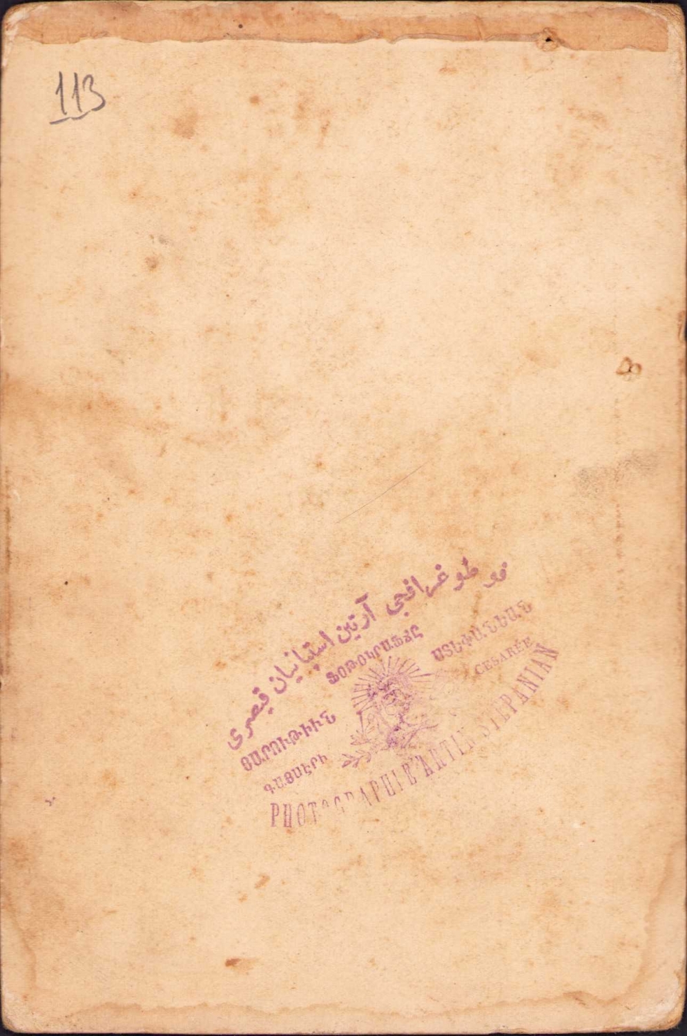Ermeni fotoğrafçı, Osmanlıca - Ermenice - Fransızca Kayseri Artin İstepaniyan damgalı kabin foto, 10x15 cm