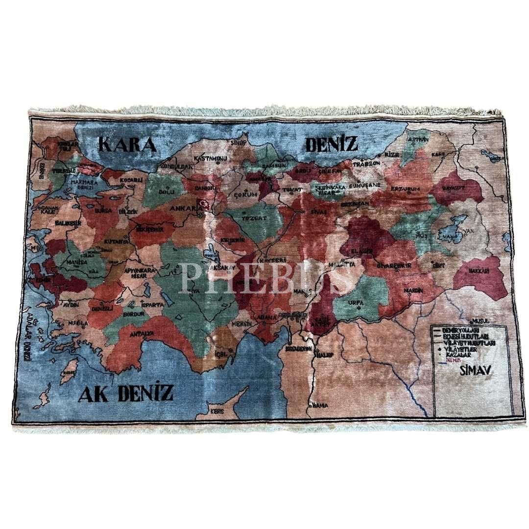 Türkiye Cumhuriyeti haritalı, büyük boy halı, 247x166 cm...