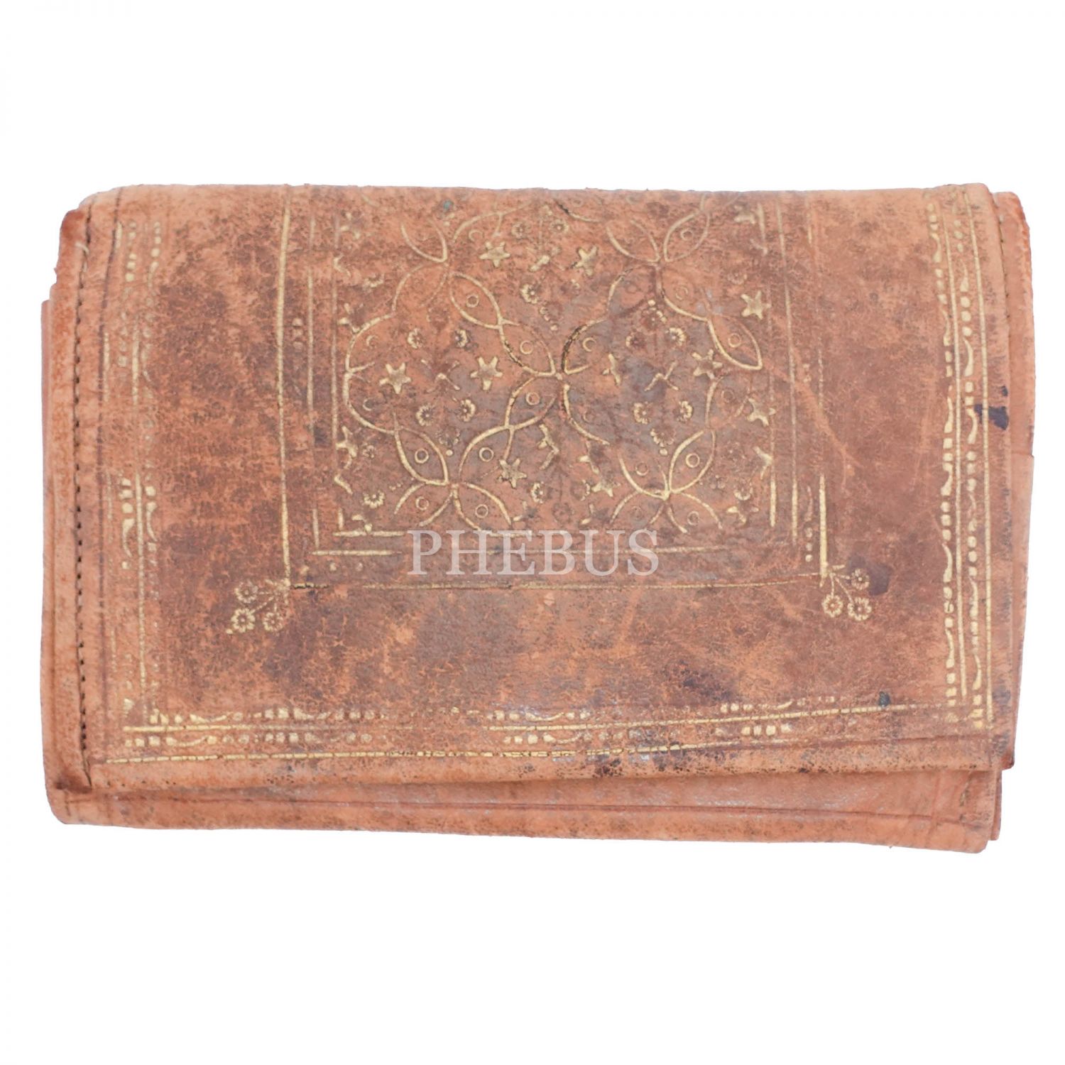 Altın yaldız işlemeli deri cüzdan kılıfında ahşap notluk, 14,5x10x3 cm...