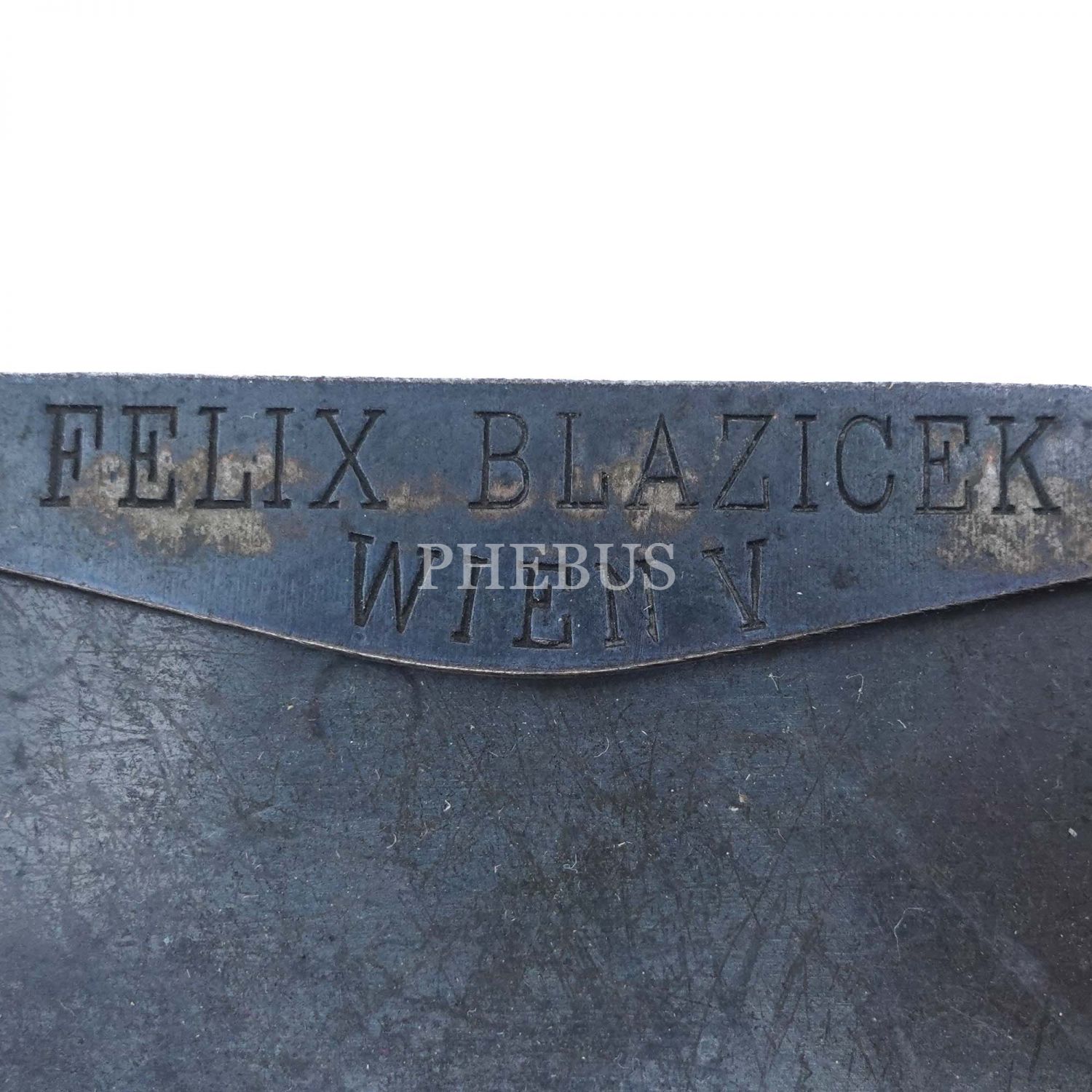 Kumbara tutamacının bir yüzünde "Felix Blazicek - Wien V"; bir yüzünde de "Kassenfabrik Feuersichere Holzschranke" ibaresi mevcuttur. Gövdede yer alan plakada yazanlar: "Spar-und Darlehensverein k.k. Staatsbahn Direction Wien"