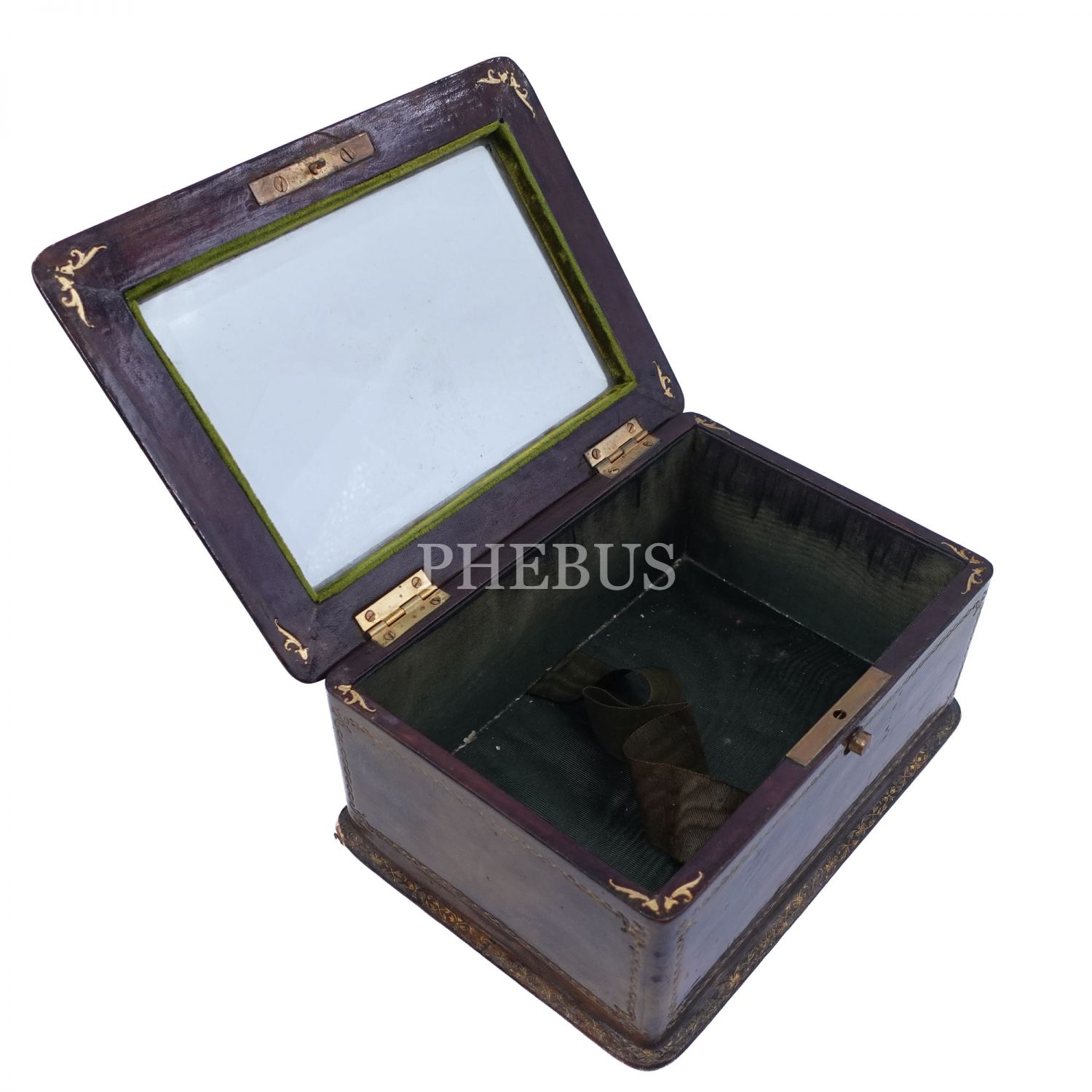 Tabanı "M.Würzl & Söhne - Wien, Karlsbad" damgalı, tüm yüzleri altın yaldız dekorlu, içi kadife kaplı ahşap mücevher kutusu, 17,5x13x8 cm...