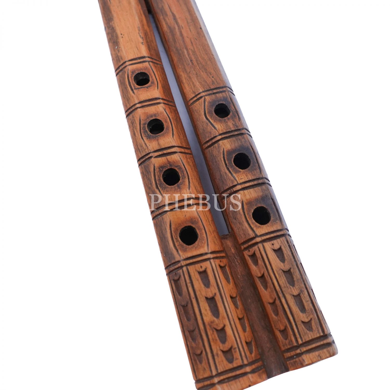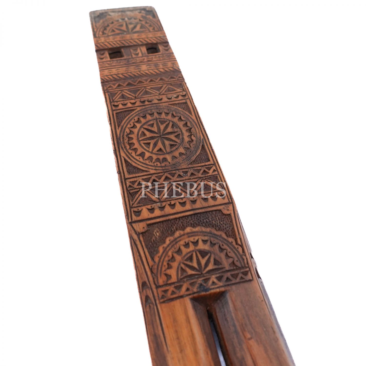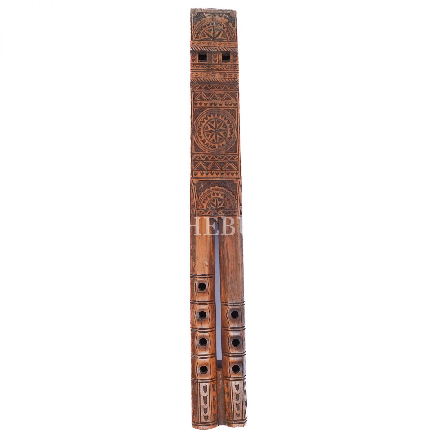Geleneksel motiflerle işlenmiş ahşap üflemeli çalgı, 32x4x2 cm...